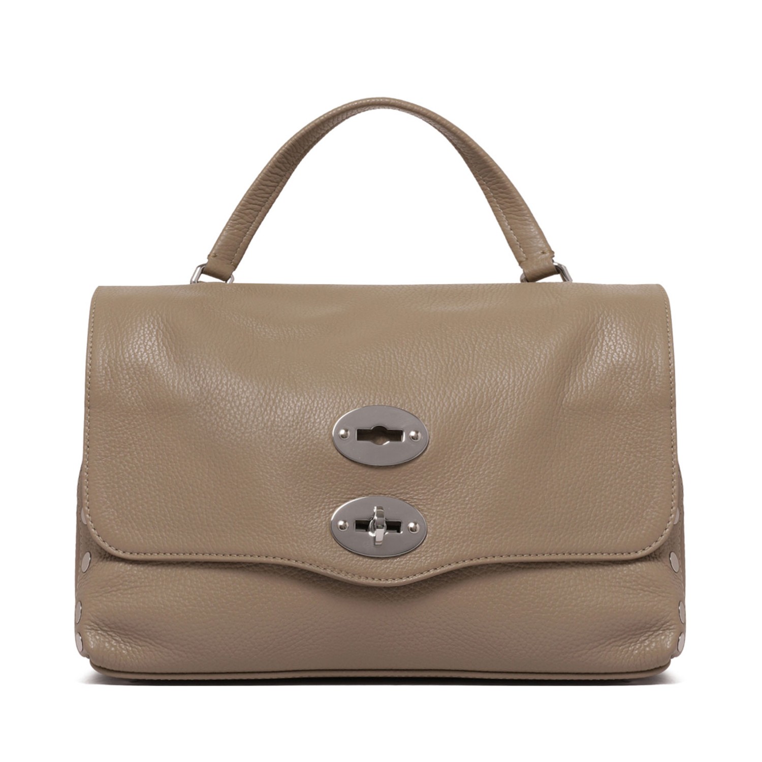 Zanellato Grey Creta Postina Small Bag. Grey Creta small bag in hammered leather with silver-tone hardware, flap top, twist lock closure, internal divided compartment, internal zip pocket and internal gusset pocket.