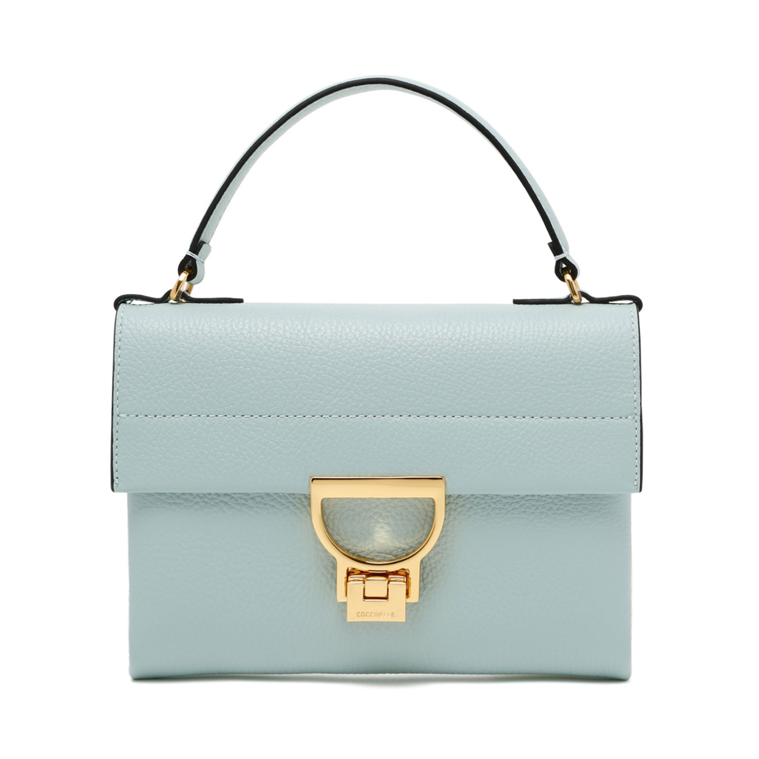 Cocinelle Acquamarine Genuine Leather Arlettis With Two Handles Bag. Acquamarine genuine leather bag with two carrying handles, adjustable and detachable shoulder strap, two external pockets, an internal pocket, zip closure, snap and twist button closure, logo.