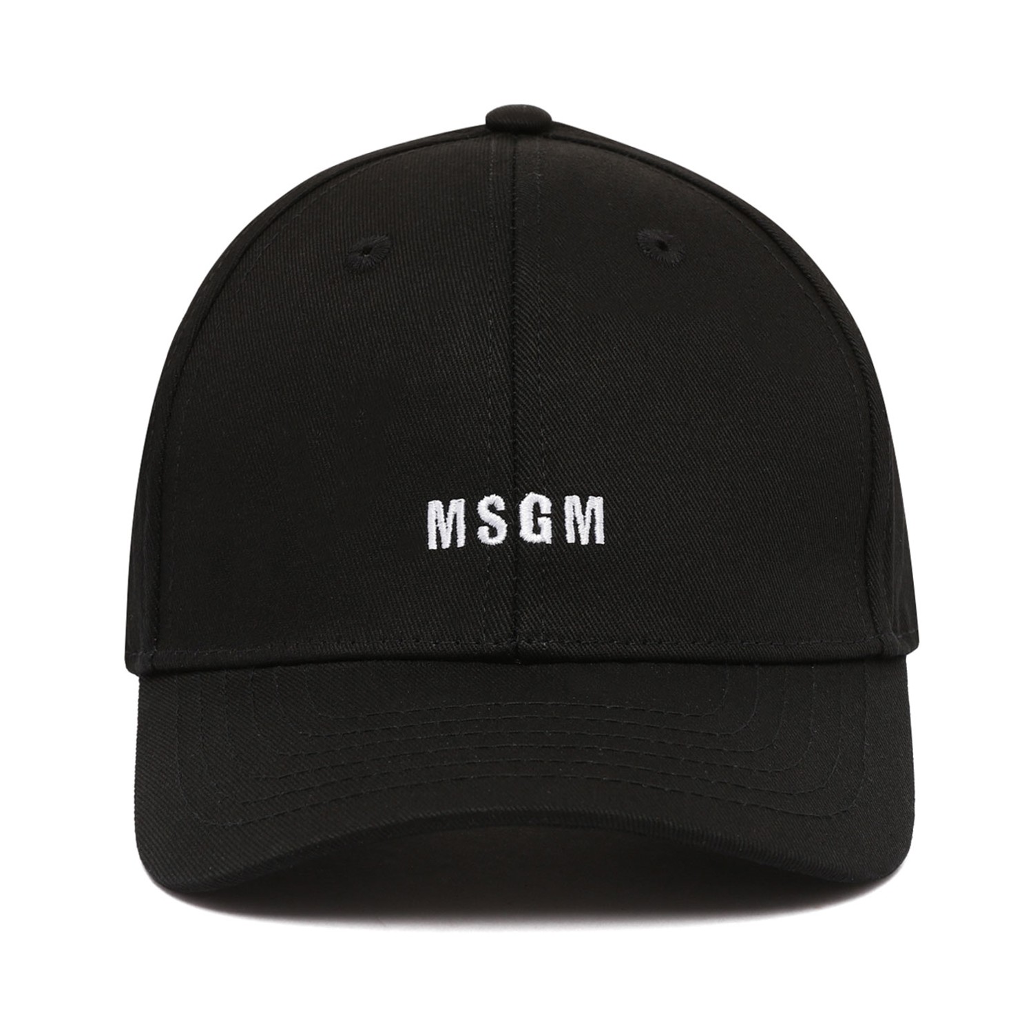MSGM Kids Black Logo Embroidered Cap. Black cotton cap with embroidered logo to the front, adjustable strap to the rear, round crown. Curved peakand eyelet detailing.