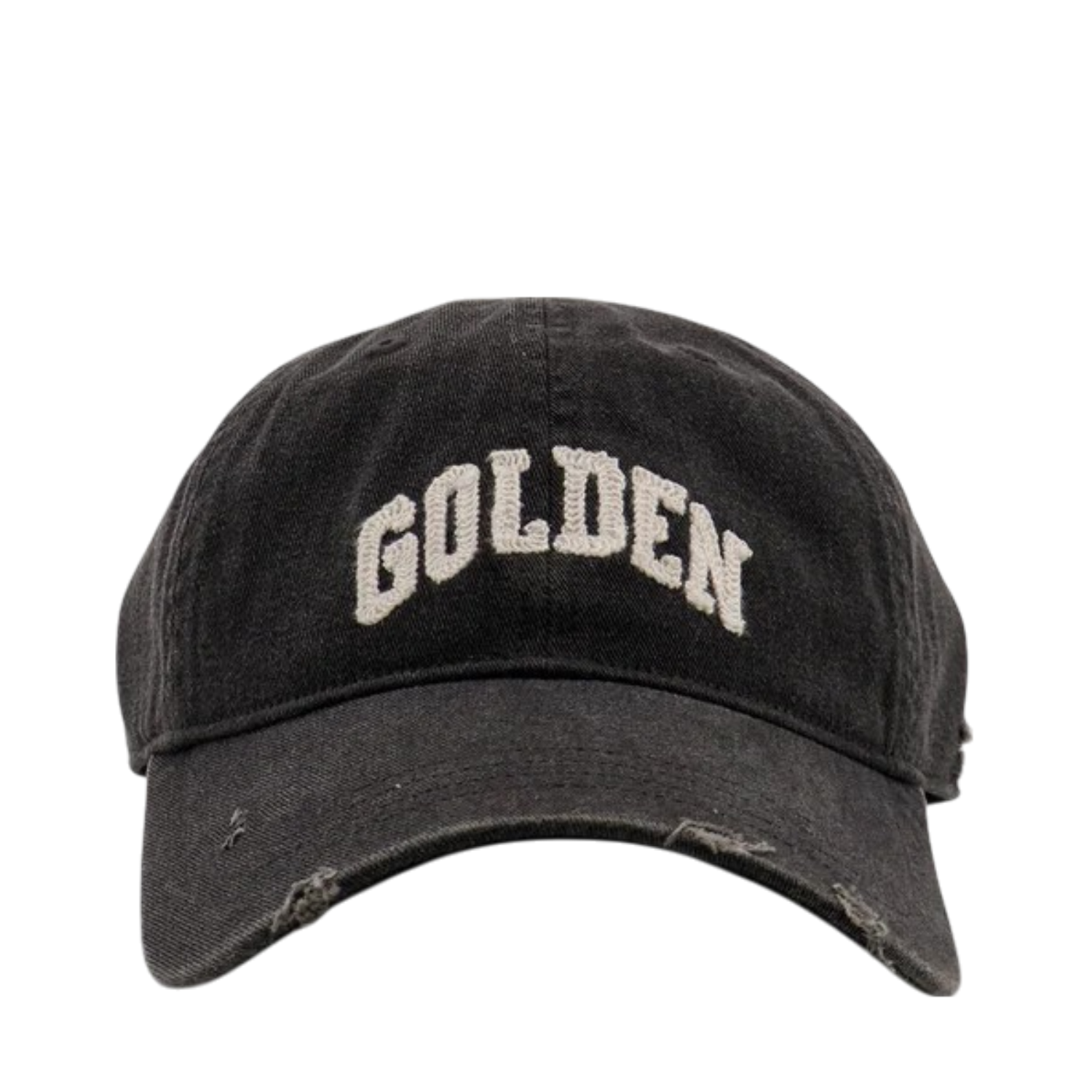Golden Goose Grey Demos Cotton Baseball Hat. Grey cotton baseball hat with logo embroidery on the front, adjustable strap on the back, star detail on the back, unlined.