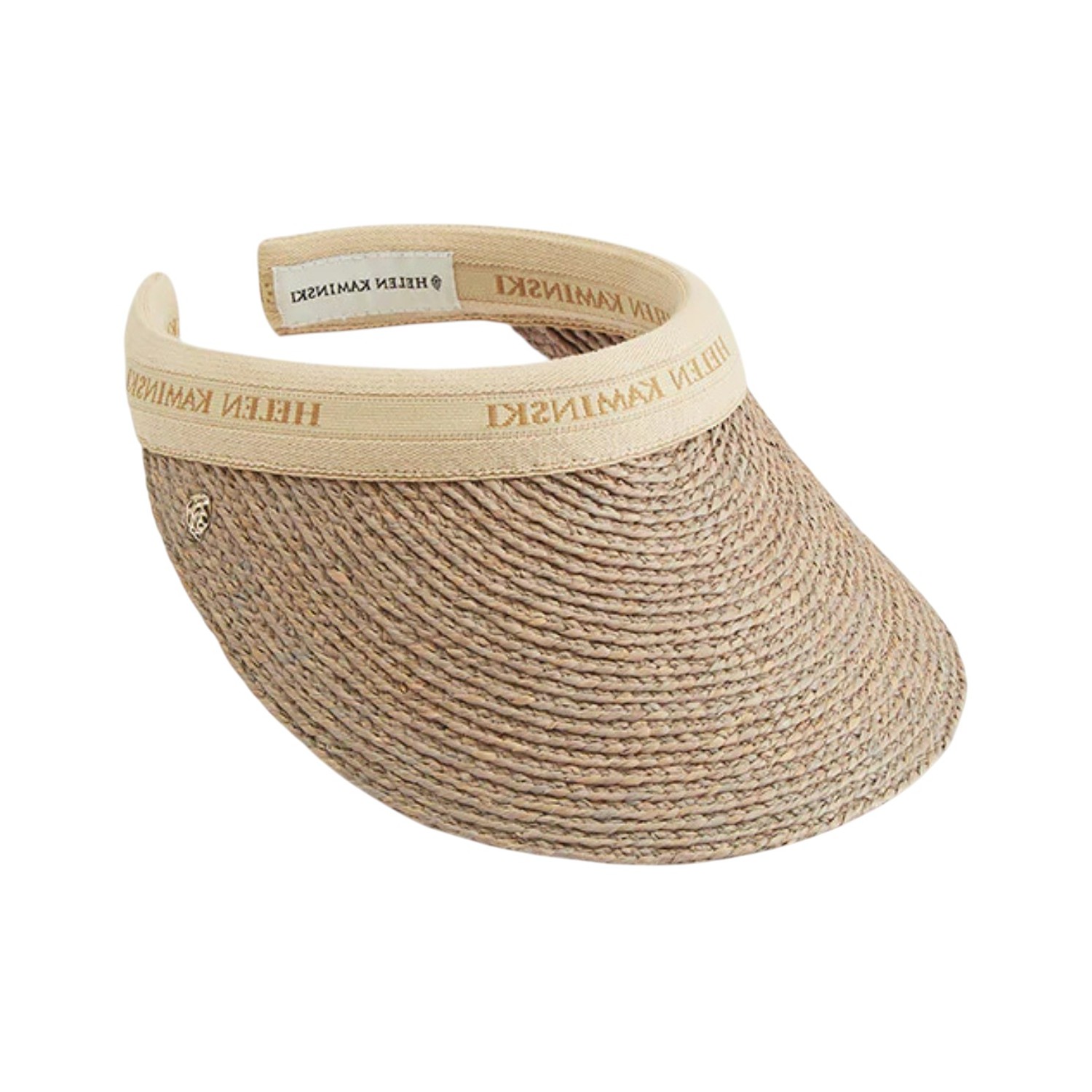 Helen Kaminski Eclipse Melange Bianca Logo Visor. The Bianca is one of our most popular visors, coveted for its easy wear and comfortable fit. Bianca's 10.5cm peak shows off the artisanal handcrafted raffia braid, offering protection from the sun whilst adding that sports-luxe style to any outfit. Now available in both iconic colours and limited edition seasonal colours, paired with signature stripe band or logo elastic band.