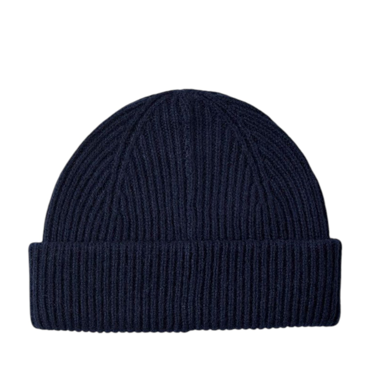 Selected Sky Captain Merino Wool Hat. Sky captain knitted fisherman beanie with fine ribbed texture.