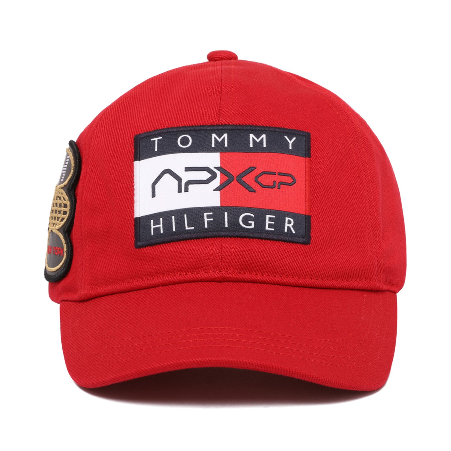 Tommy Hilfigher Red F1 Cap. Red cotton cap with logo patch to the front and to the side.