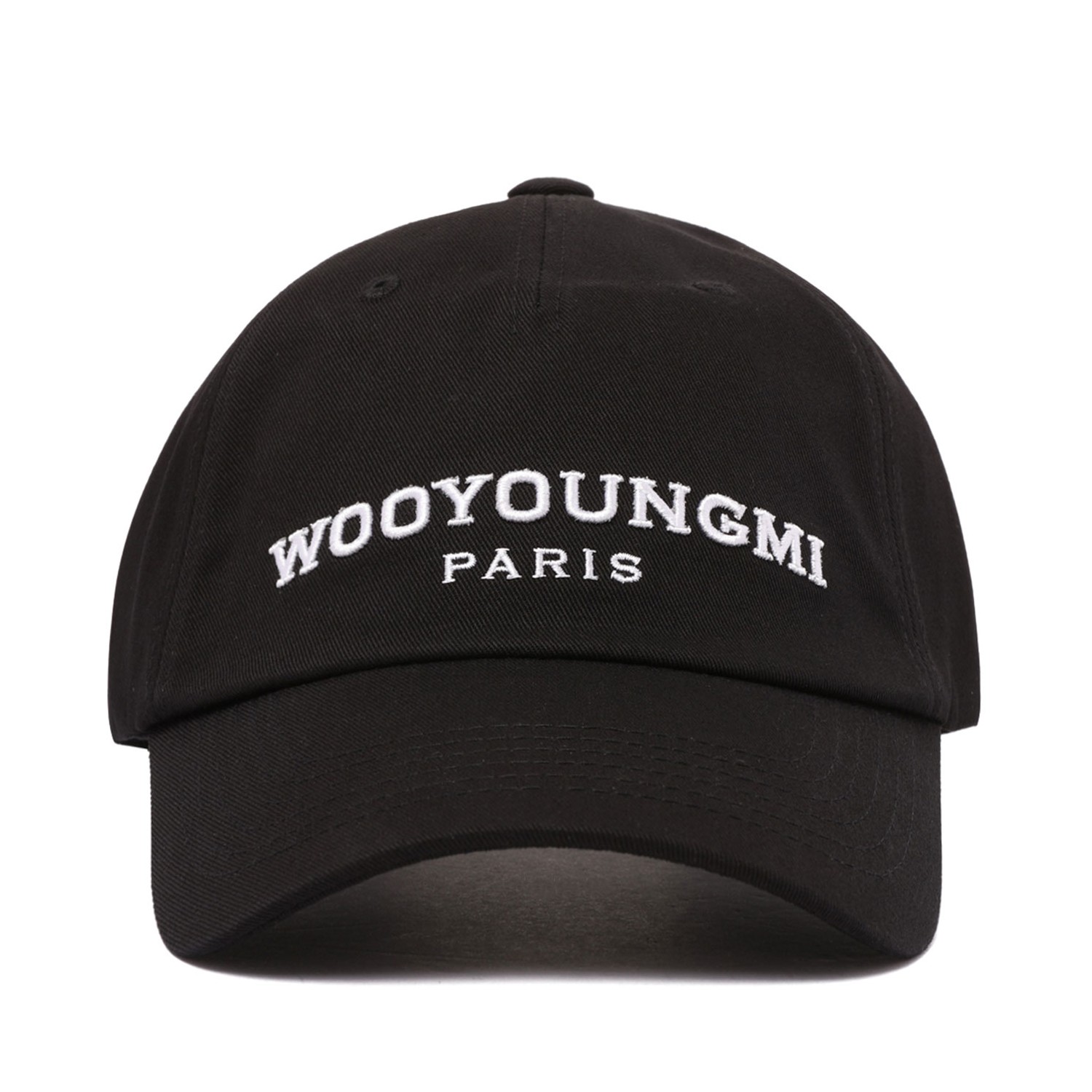 Wooyoungmi Black Embroidered Ball Cap. Black cotton cap with white embroidered logo to the front.