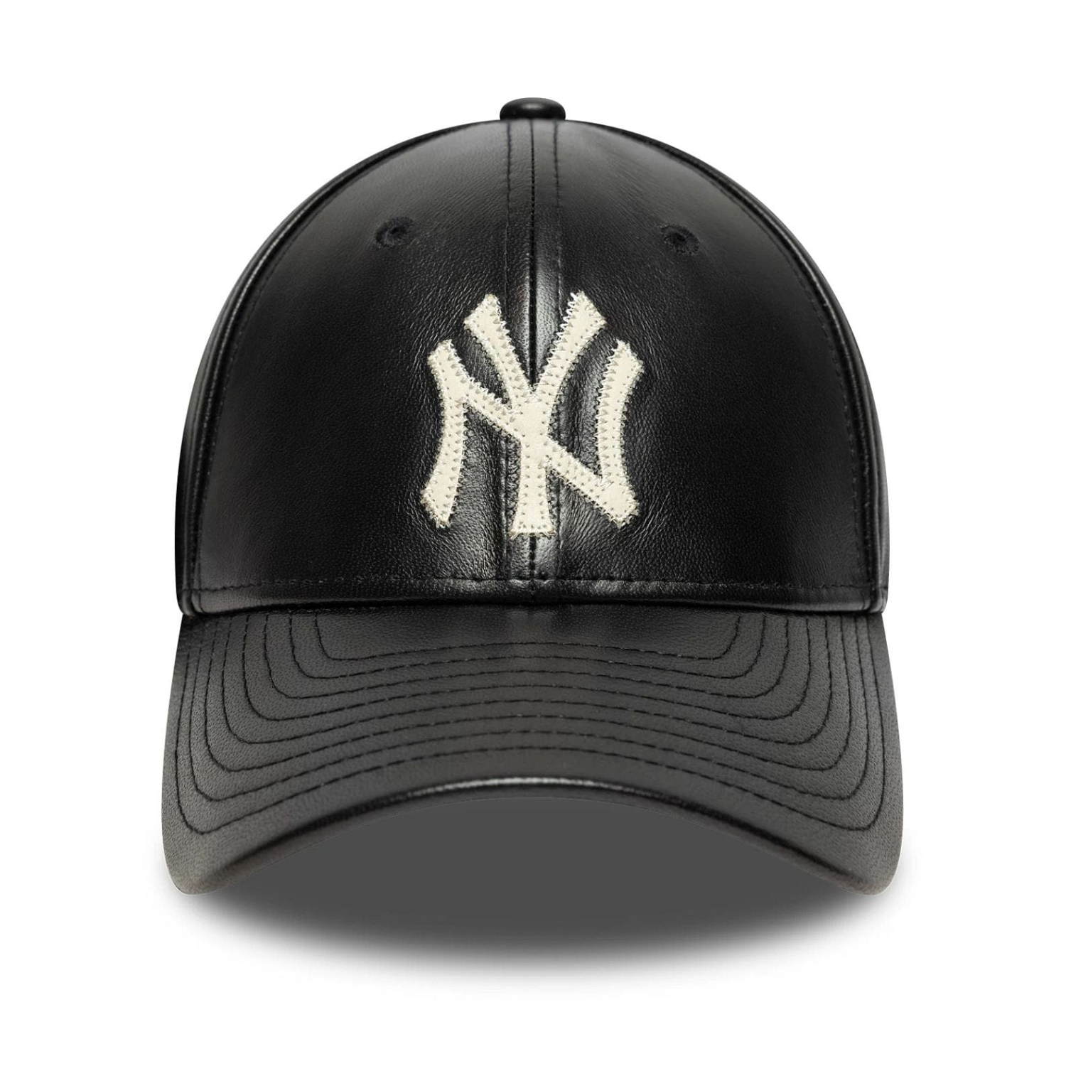 New Era Black Leather 9FORTY M-Crown New York Yankees MLB. Black leather 9FORTY M-Crown New York Yankees MLB with New York Yankees logo on the front, New Era Flag embroidered on the left, modern structured crown. Adjustable strapback closure, curved visor, made of genuine leather.