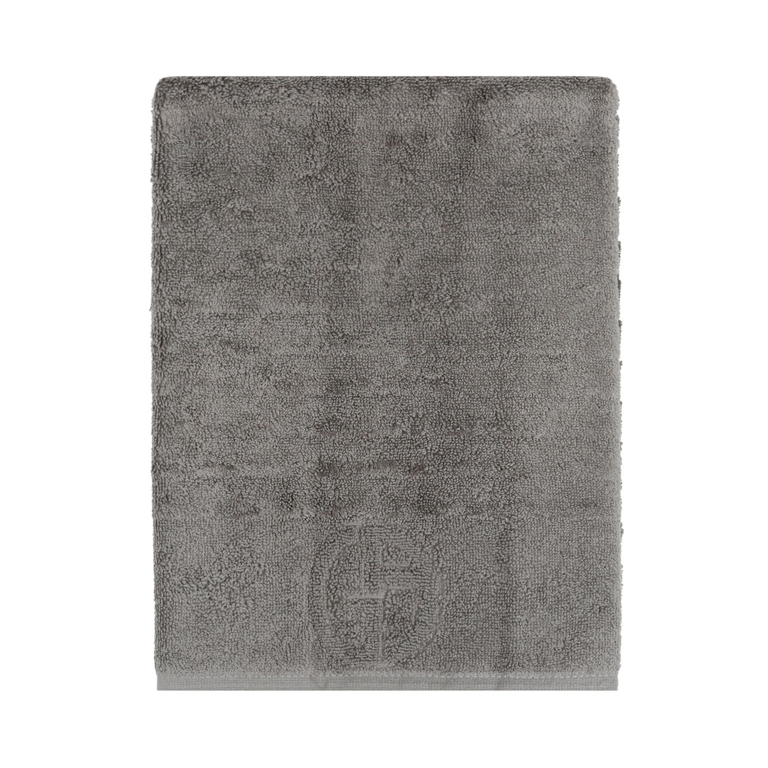 Armani Casa Graphite Grey Towel. Graphite grey soft cotton towel, Dorotea is a bathroom collection with the precious addition of a pleated effect, combined with the jacquard weave of the sponge, further enriched by a jacquard GA logo on the bottom.