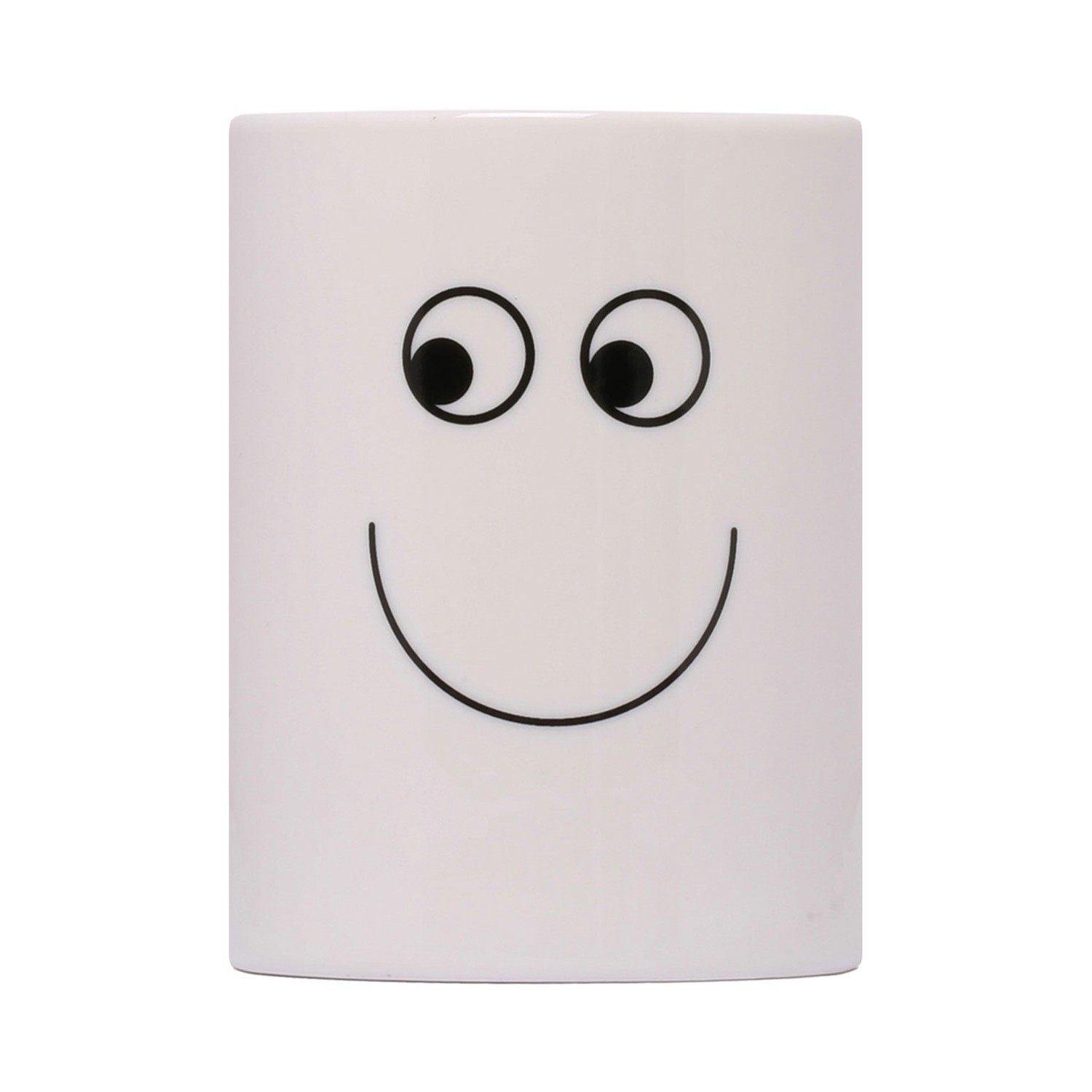 Anya Hindmarch White Eyes Bathroom Set. White bone china bathroom set comprising a toothbrush holder, soap dish and apothecary jar