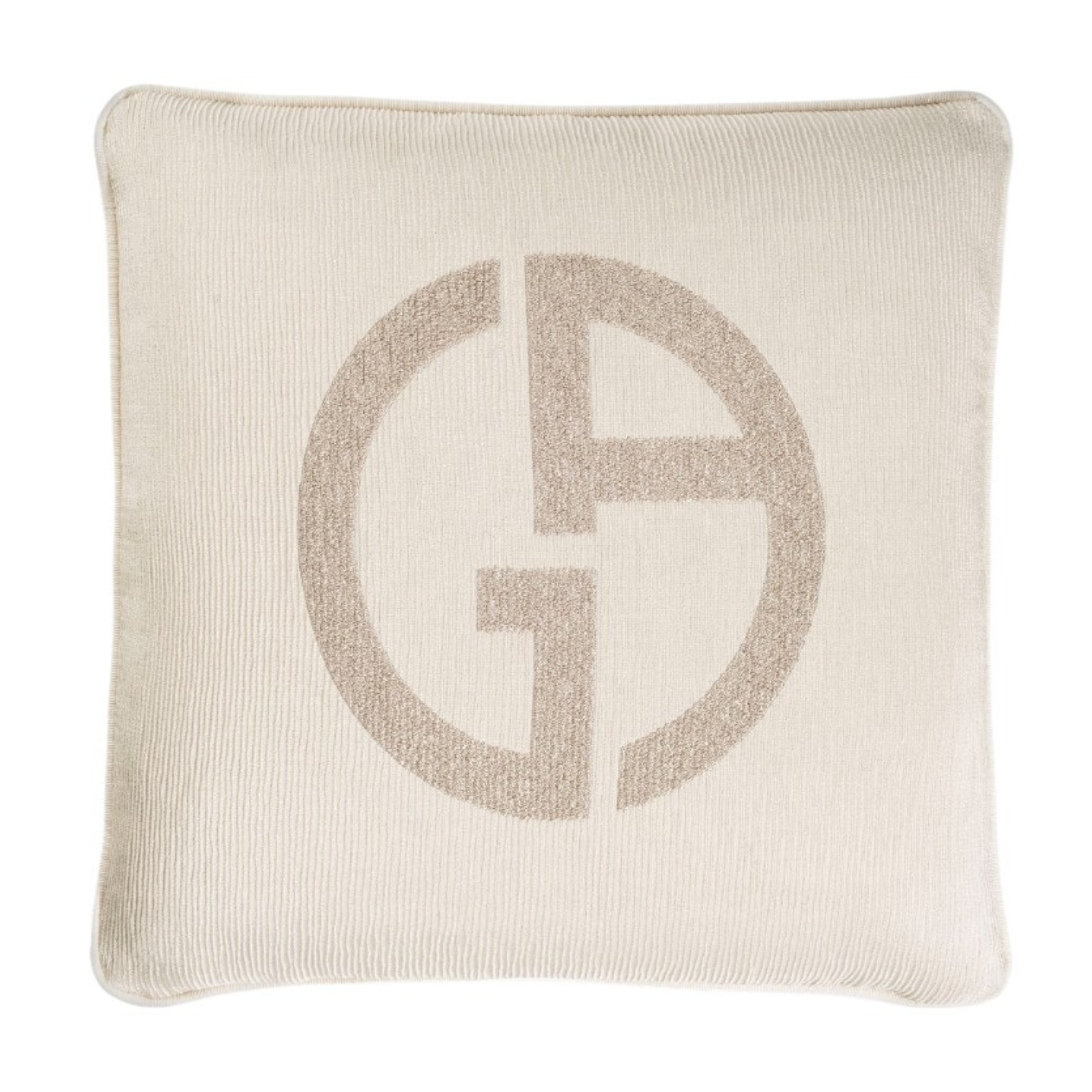 Armani Casa Janette Pillow. Ivory and pearl pillow with large Giorgio Armani logo, the main feature of the Janette line.
