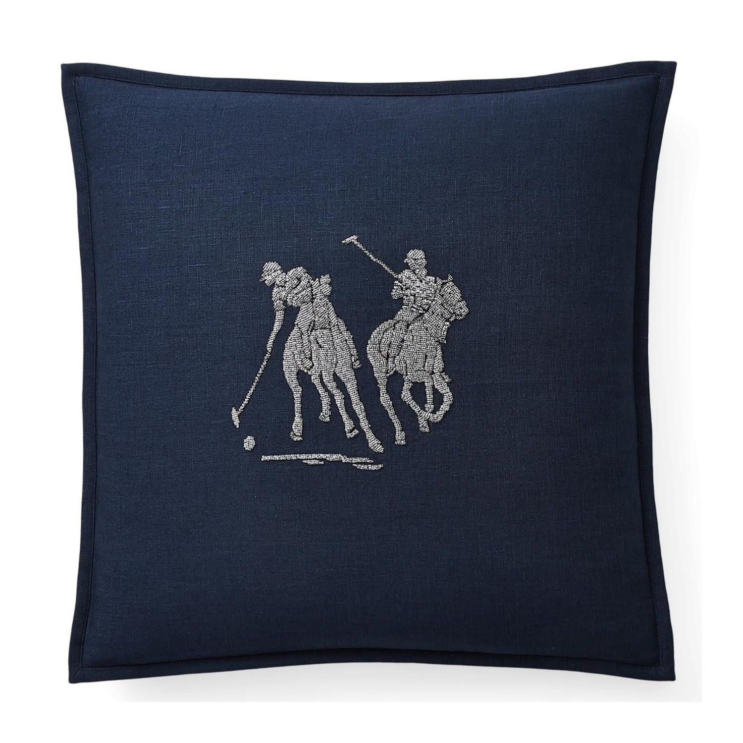 Ralph Lauren Home Navy Griffith Throw Pillow. Emblematic of Ralph Lauren's rich equestrian history, the Griffith throw pillow is crafted from supple linen with intricate tonal beadwork revealing a spirited polo match.
