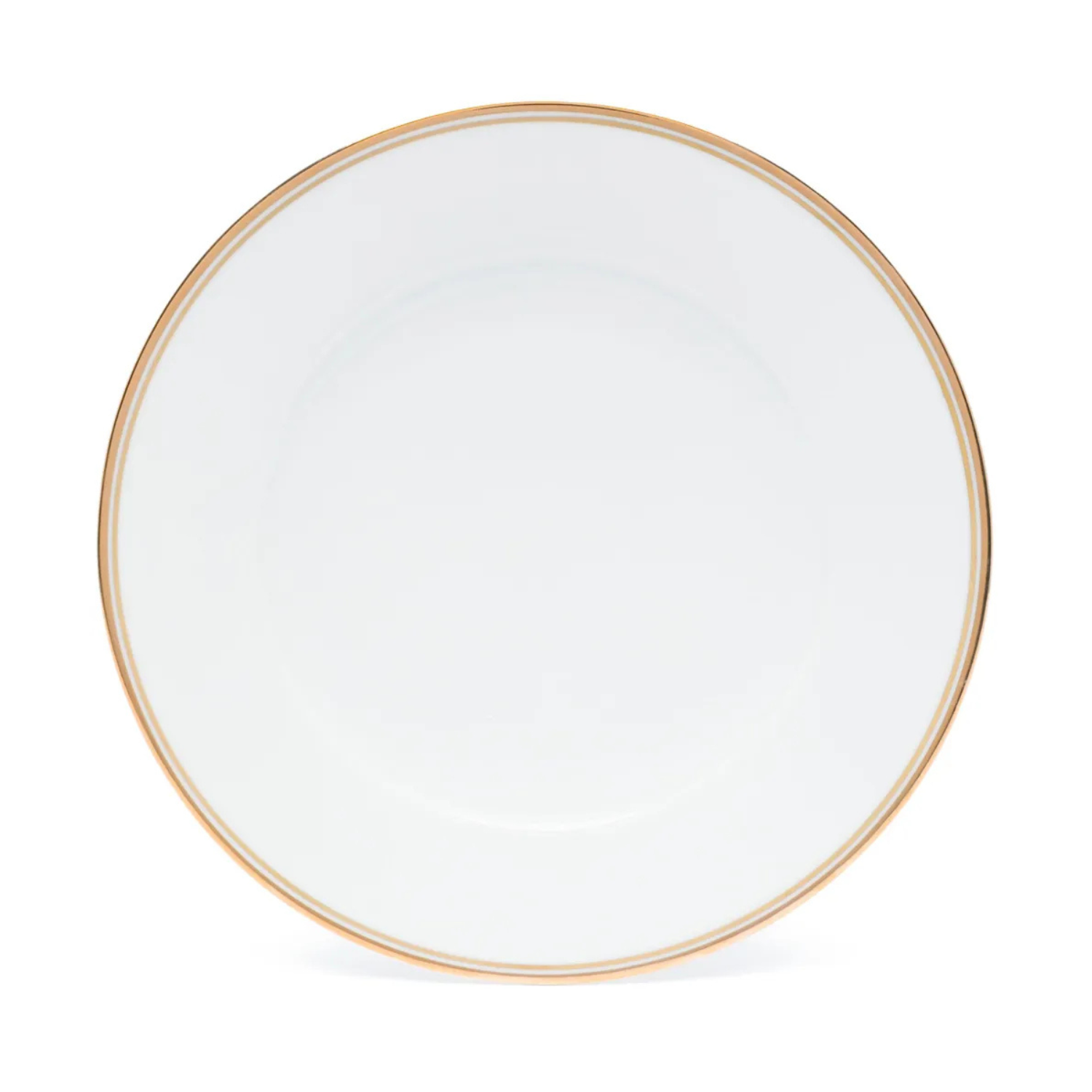 Ralph Lauren Home Wilshire Dinner Plate. This fine porcelain plate is hand-painted with matte and polished bands of 24K gold or silver-hued platinum, and will effortlessly complement our timeless dinnerware patterns.