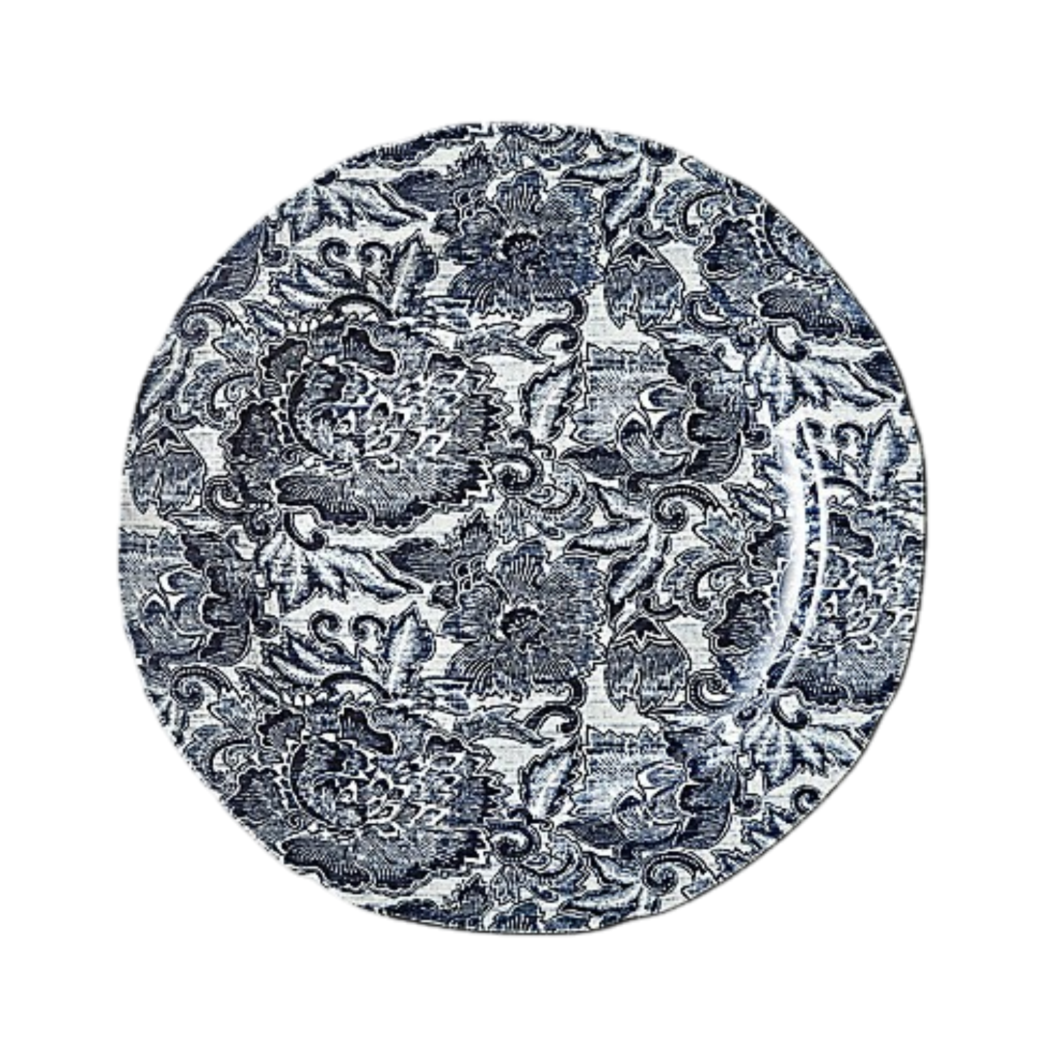 Ralph Lauren Faded Peony Flat Plate. For the creation of the new tableware collection, Ralph Lauren has created a collaboration with Burleigh, the renowned 160-year-old ceramics manufacturer, that, for the first time, pays homage to modern American style and the fine English tradition. Inspired by a Far Eastern block-printed batik fabric, the large floral motifs of Faded Peony merge with Ralph Lauren's Garden Vine and Midnight Sky for an eclectic and personal combination, ideal for everyday conviviality. Meticulously hand-finished by Burleigh artisans, each creation is a one-of-a-kind piece that reflects both companies' commitment to quality and craftsmanship.