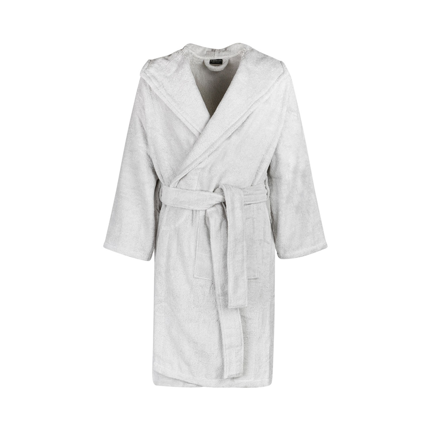 Armani Home Light Grey Bathrobe. Light grey soft cotton bathrobe with hood and belt. An essential bathroom accessory that follows the aesthetic canons of the brand.