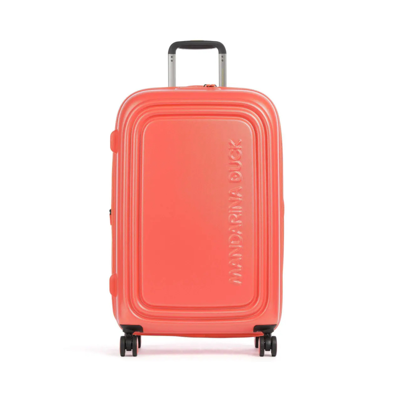 Mandarina Duck Pumpkin Logoduck Trolley Suitcase. Pumpkin trolley suitcase closes with two-way zip front closure (lockable closure), side handle and top handle. TSA combination lock, collapsible luggage tags, expandable size.