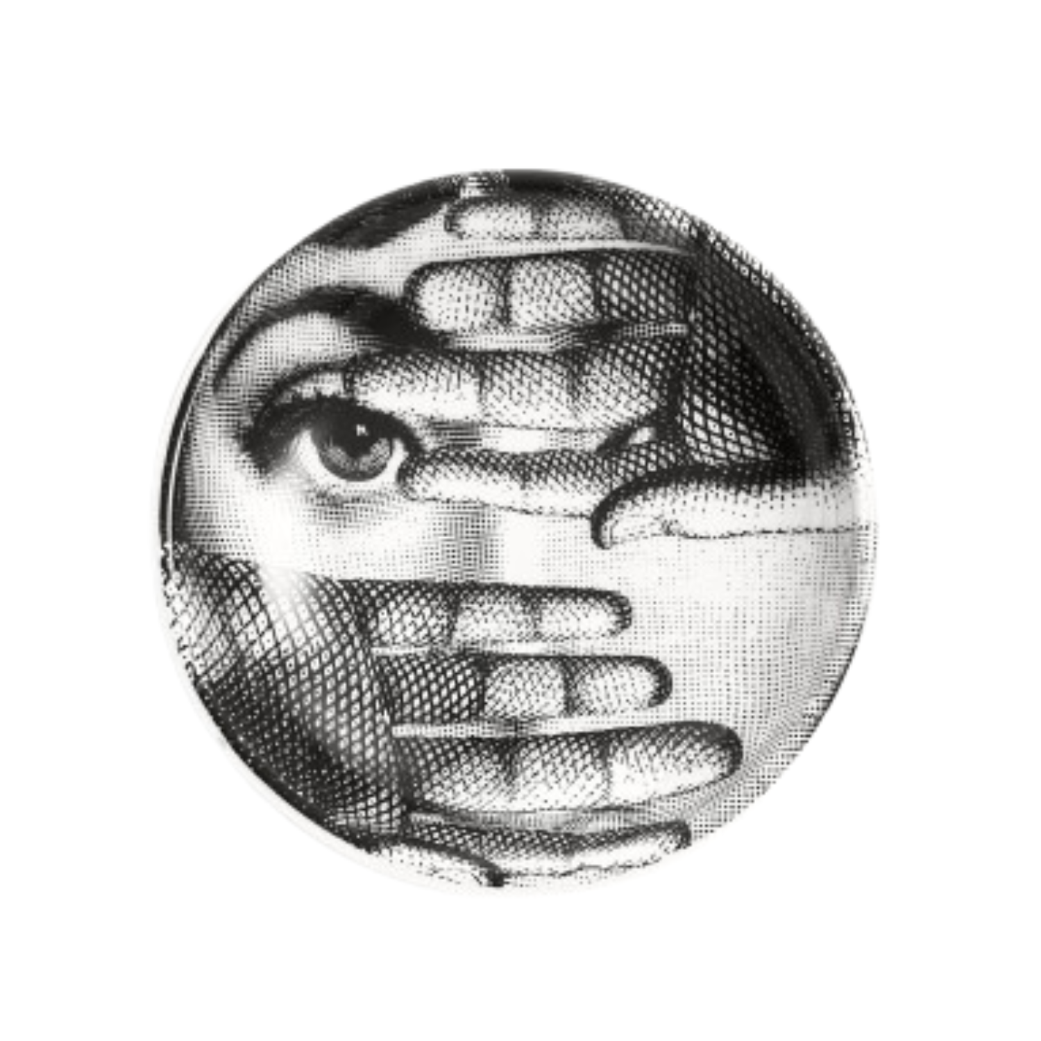 Fornasetti Round Ashtray Theme and Variations No.154. This Fornasetti ashtray enriches the Tema e Variazioni series with a compositional game on the border between reality and imagination. Each Fornasetti round ashtray can be used as a pocket emptier. Each Fornasetti ashtray is a unique piece silkscreened by hand on porcelain: any minimal discrepancies between similar creations are the result of artisanal production.