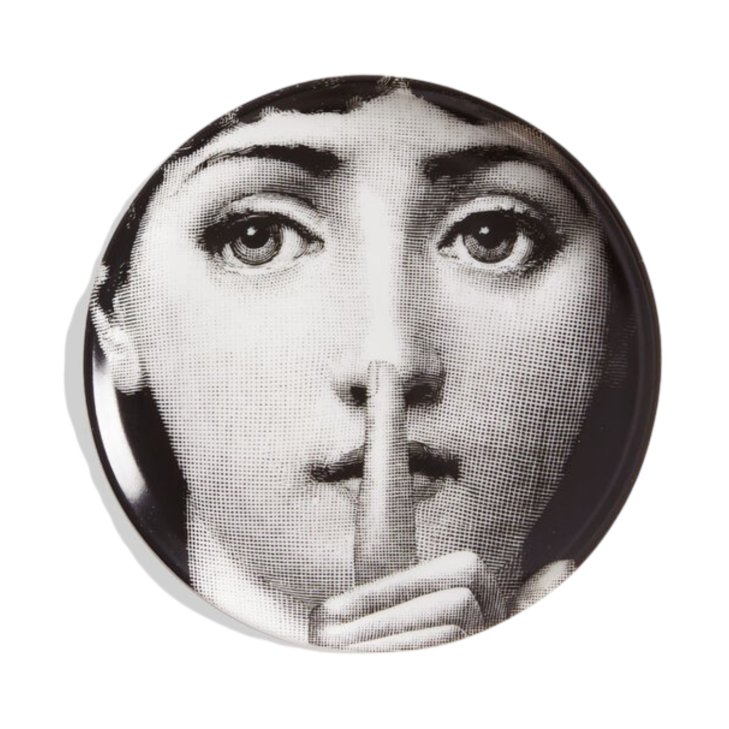 Fornasetti Coaster Theme and Variations n.334. The round shape of this coaster frames the features of Lina Cavalieri, in one of the countless interpretations that Fornasetti dedicated to her in the Tema e Variazioni series.Any minimal discrepancies between similar creations are the result of artisanal production and attest to the uniqueness of each product.