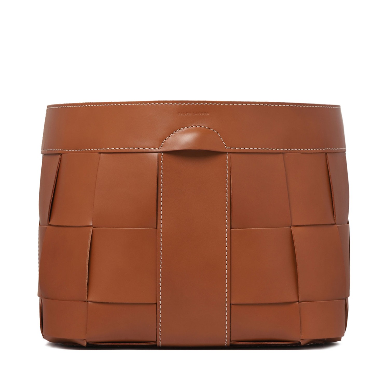 Ralph Lauren Home Brown Small Hailey Basket. Brown calf leather small basket, interwoven design, debossed logo to the front, tonal stitching, open top.