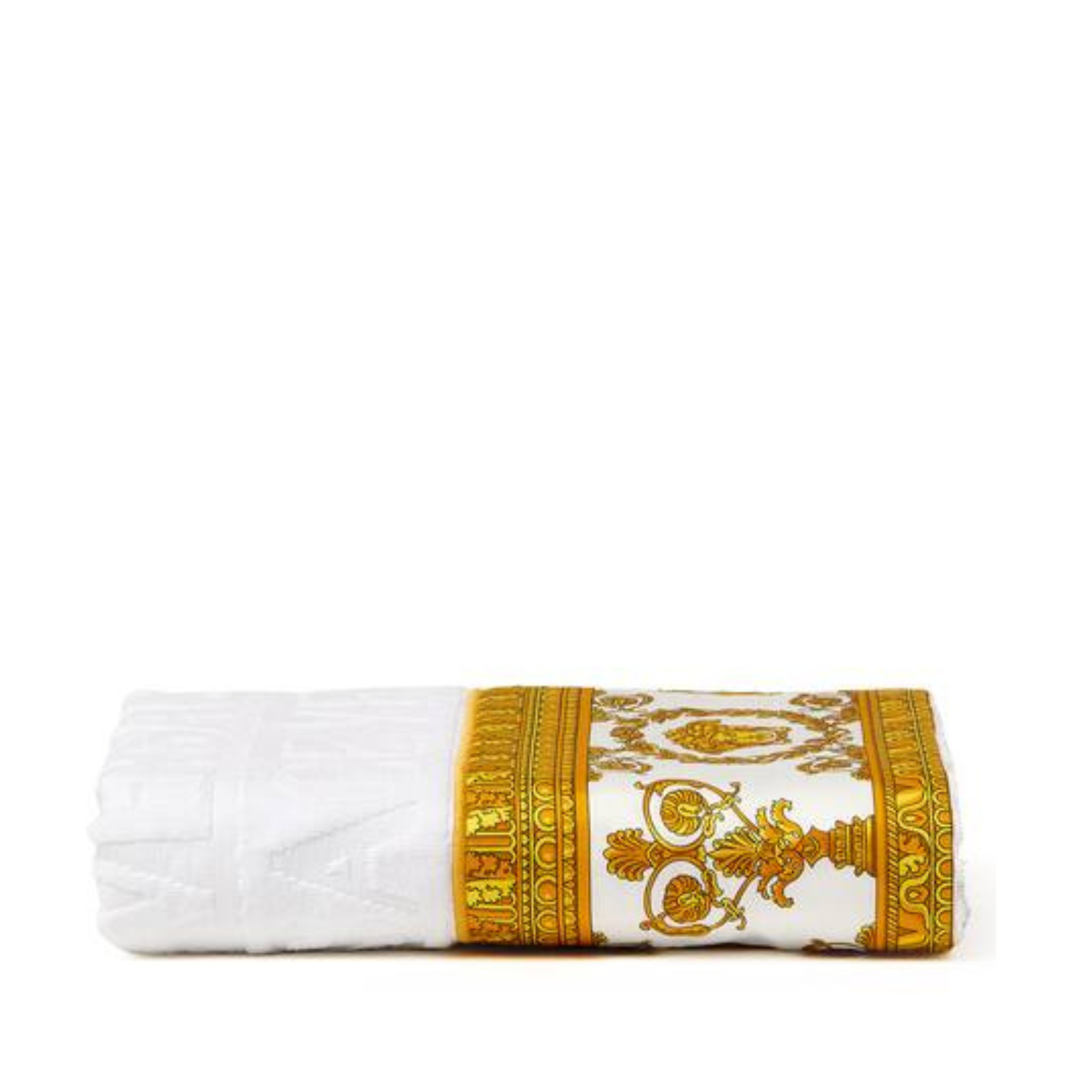 Versace Home White I Love Baroque Face Towel. White cotton face towel with towelling finish, signature I Love Baroque print.