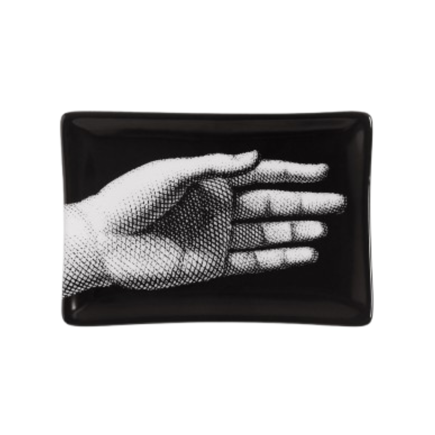 Fornasetti Hand Ashtray. The hand design often recurs in Fornasetti's decorative production, given the importance that Piero attributed to anatomical drawing: here it embellishes this hand-decorated porcelain tray ashtray. Any minimal discrepancies between similar creations are the result of artisanal production and attest to the uniqueness of each product.