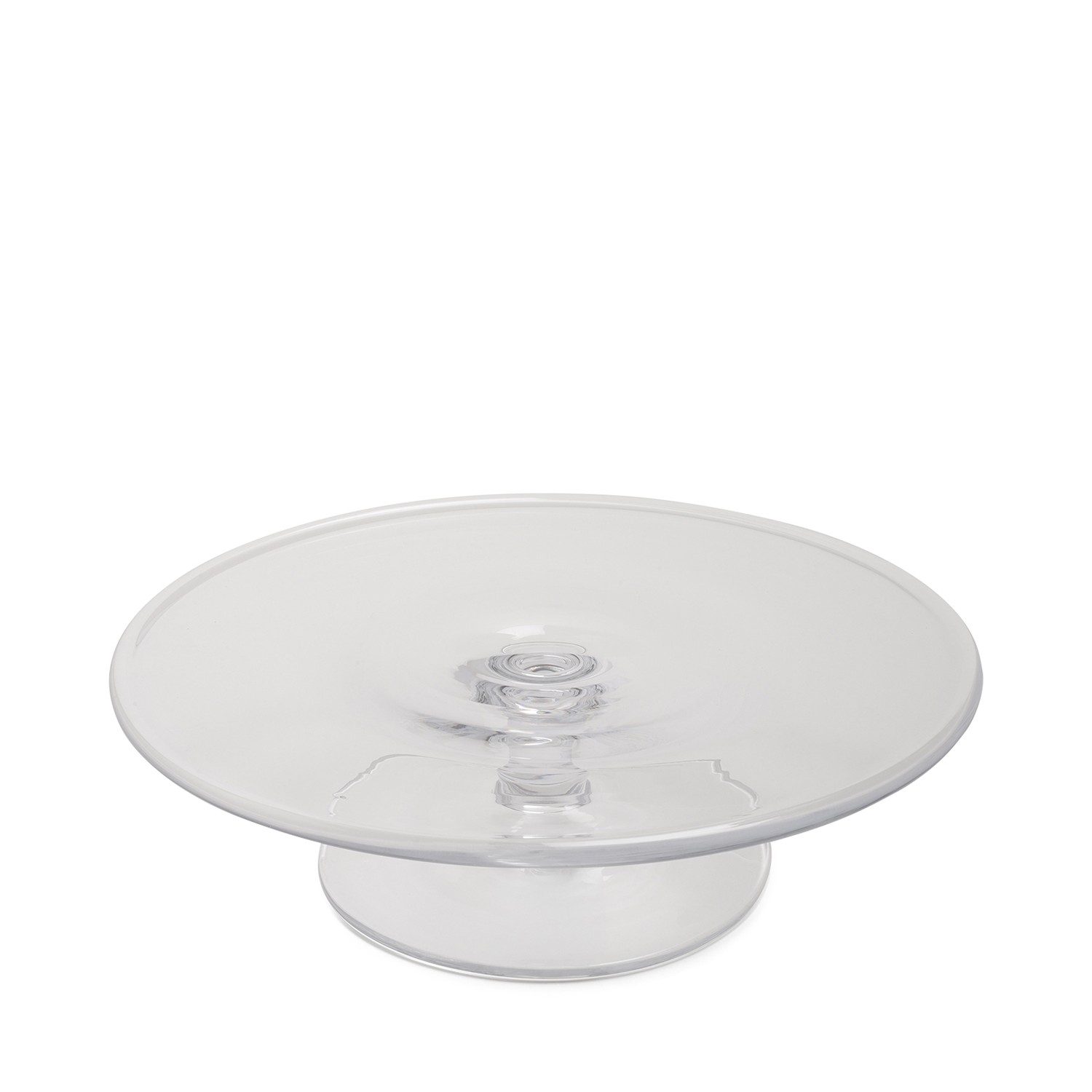 Ralph Lauren Home Clear Glass Cake Plate. Clear glass cake plate defined by a timeless, elegant design. Crafted from refined transparent glass, this Ralph Lauren Home cake stand features a wide, smooth serving surface elevated by a sculpted pedestal base that adds both stability and visual sophistication. The minimalist silhouette highlights the purity of the glass while allowing desserts and pastries to take center stage. Clean lines and balanced proportions reflect the brand