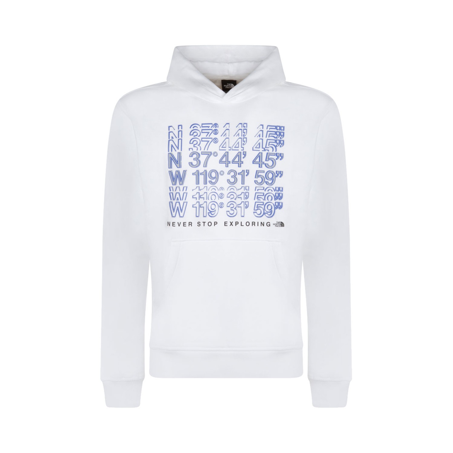 The North Face White Hoodie. White cotton hoodie, logo print on the chest, dropped shoulders and drawstring hood.