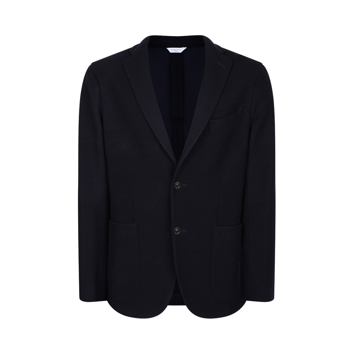 Boglioli Black Jacket. Black virgin wool jacket with peak lapels, flap pockets, two-button closure.