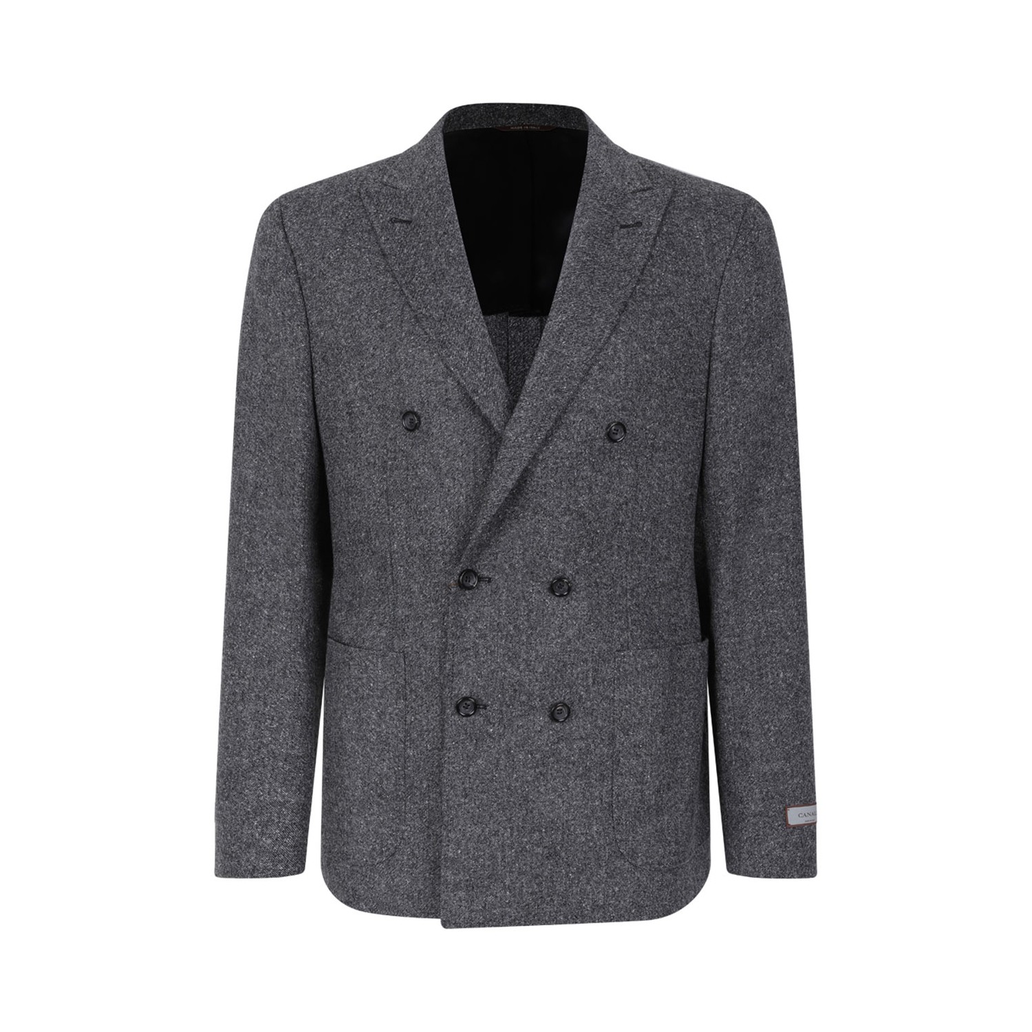 Dolce & Gabbana Grey Wool Suit. Grey wool tailored suit eith double-breasted blazer with peak lapels, front button fastening, long sleeves with buttoned cuffs, welt chest pocket, and flap side pockets. Matching slim-fit trousers with belt loops, front zip and button closure, and side slit pockets.