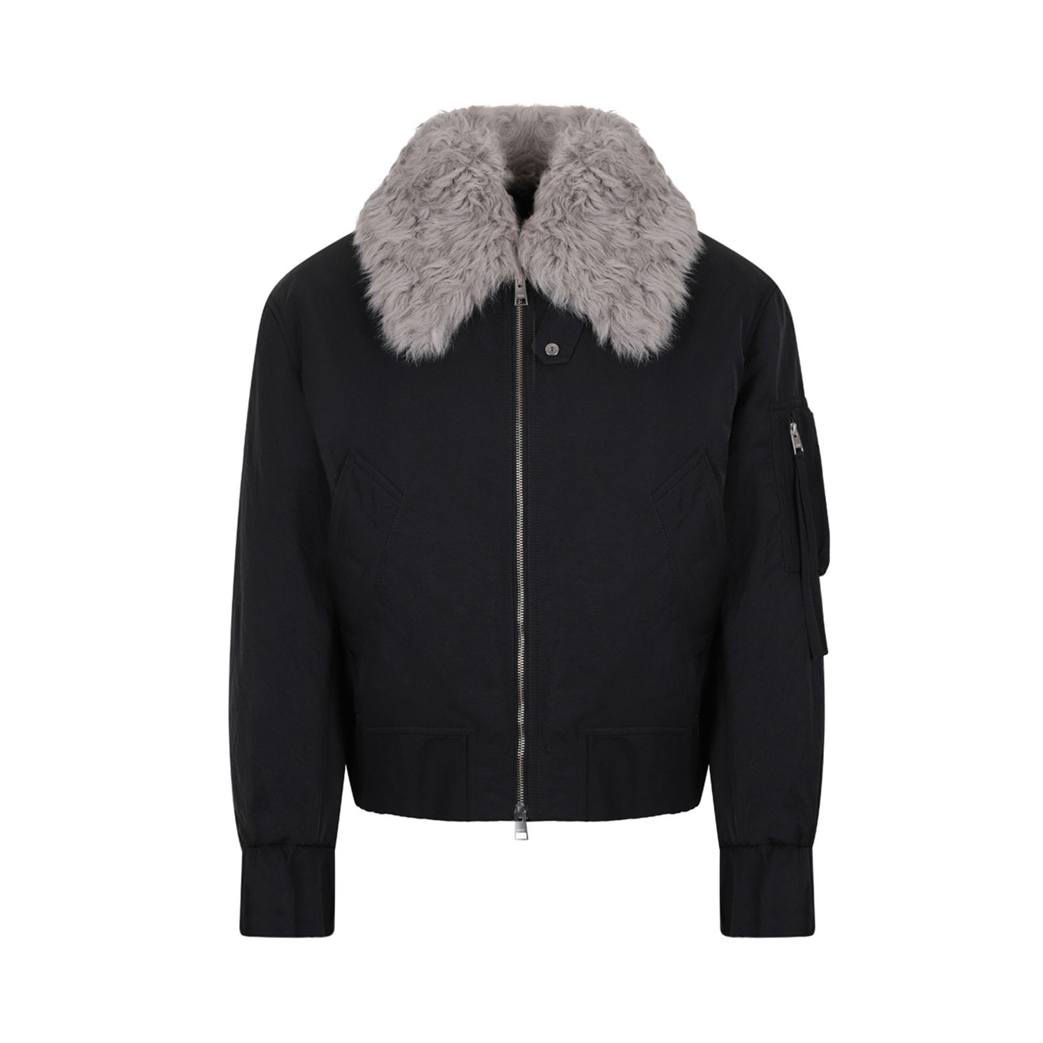 Ami Padded Bomber Jacket In Crumpled Nylon Serge. Padded bomber jacket in crinkled nylon serge with Removable shearling collar. Two-way nickel-colored metal zip with