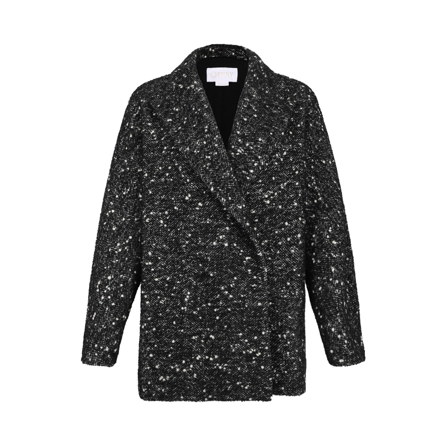 Genny Black Boucle Jacket. Black boucle jacket with double-breasted fastening, peak lapels and long sleeves.