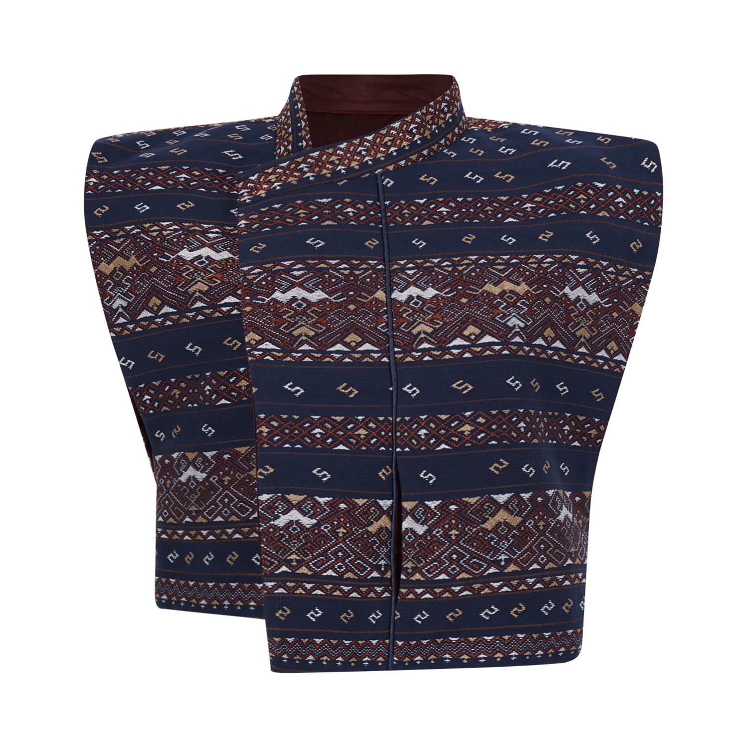 Hui Milano Sleeveless Blue Denim Vest. Sleeveless blue denim vest, fully decorated with detailed Miao ethnic embroidery. The high collar and refined patterns express a strong cultural heritage, combining traditional craftsmanship with modern materials for a unique style. The versatile design allows the vest to be worn on both sides, making it perfect on its own or as a mid-layer for various outfits.