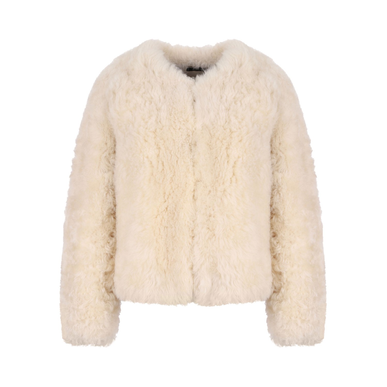Off White Collarless Shearling Jacket