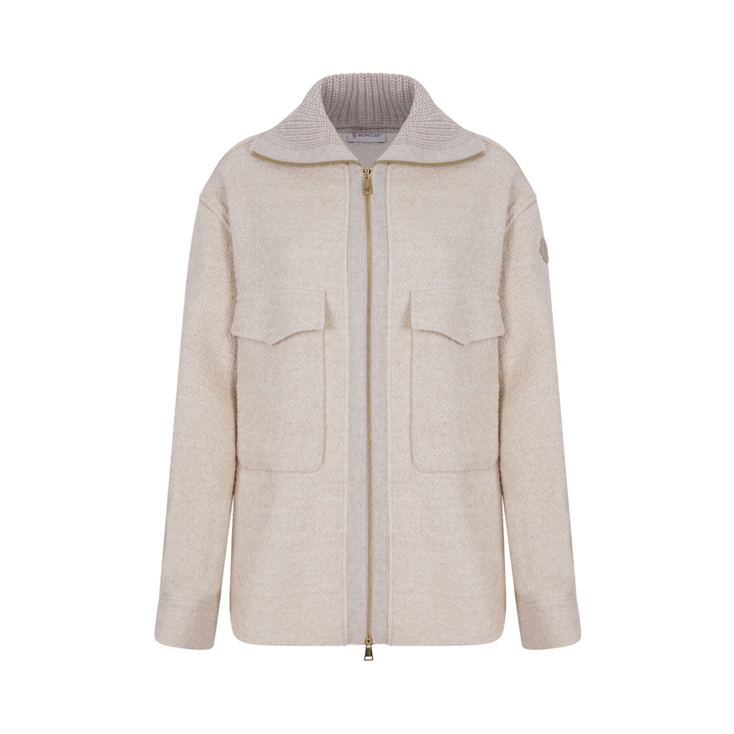 Moncler Beige Shirt Jacket. Beige shirt jacket with zip closure, double pocket, logo patch at the sleeve.