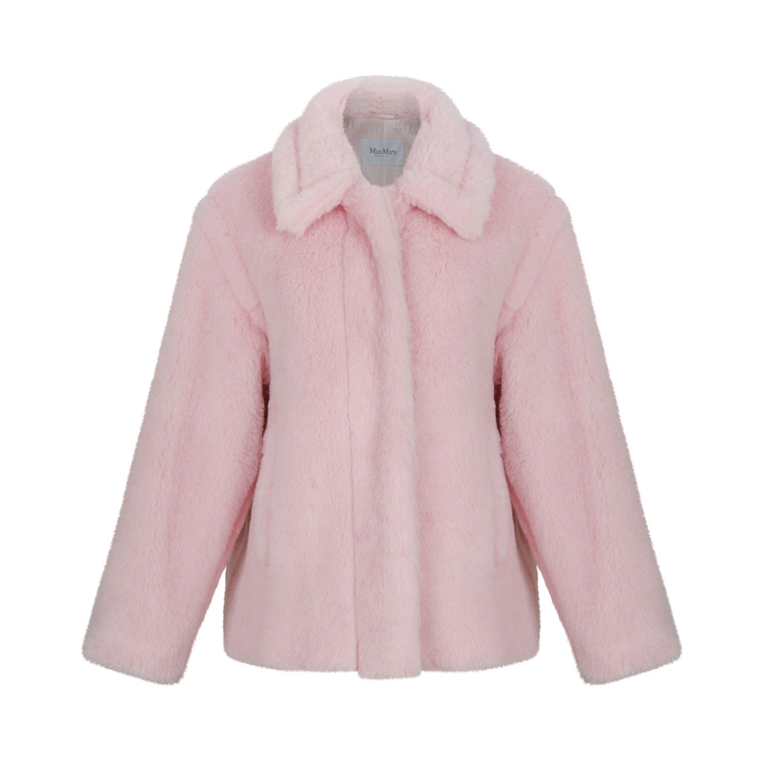 Max Mara Pink Alpaca Fur and Virgin Wool Jacket. Pink alpaca fur and virgin wool jacket with hidden button closure, fur collar, two pockets on the front.