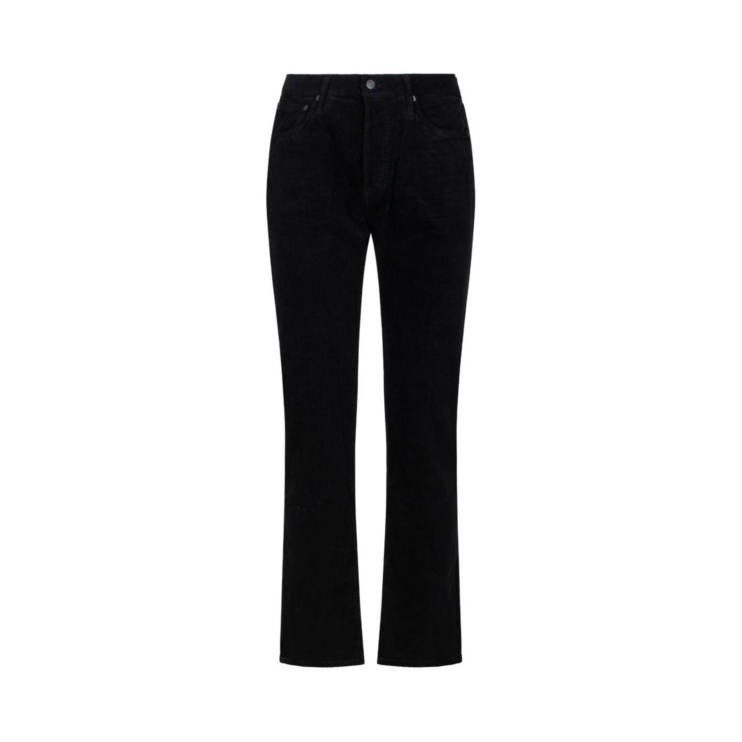 Tom Ford Black Standard Fit Jeans. Black 12 weaves cord jeans, brand signature tack button closure and rivets. Coin pocket on front right with Tom Ford label, T bar tack on button fly, brand leather back tab.