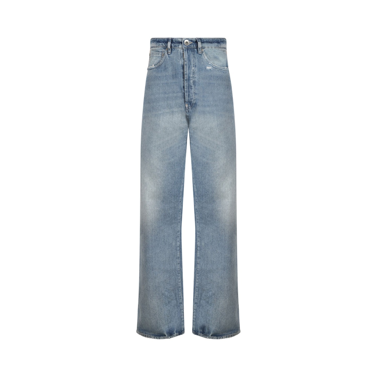Maison Margiela Blue Straight Leg Jeans. Blue cotton denim jeans, button fly fastening, mid-rise. Belt loops, classic five pockets, floor-length, straight leg.