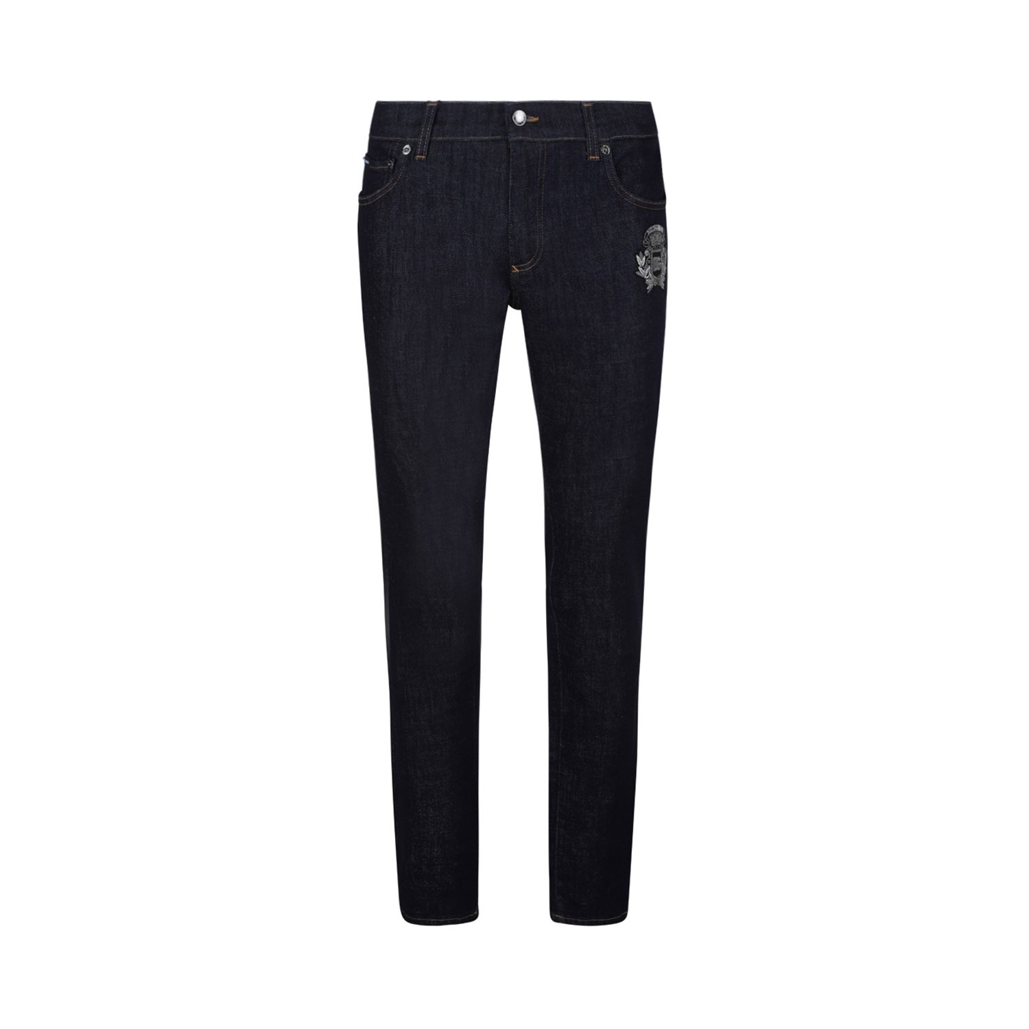 Dolce & Gabbana Blue Jeans. Blue stretch cotton jeans. Regular fit, button and hidden zip fastening, heraldic crest on the side, five pocket.