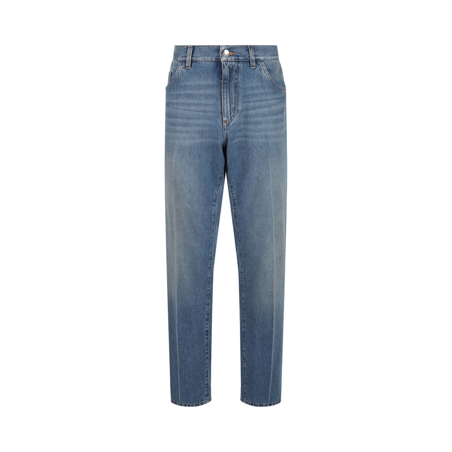 Dolce & Gabbana Straight Leg Jeans. Imperial blue cotton jeans with concealed fly and button fastening. Belt loops, classic five pockets and logo plaque.