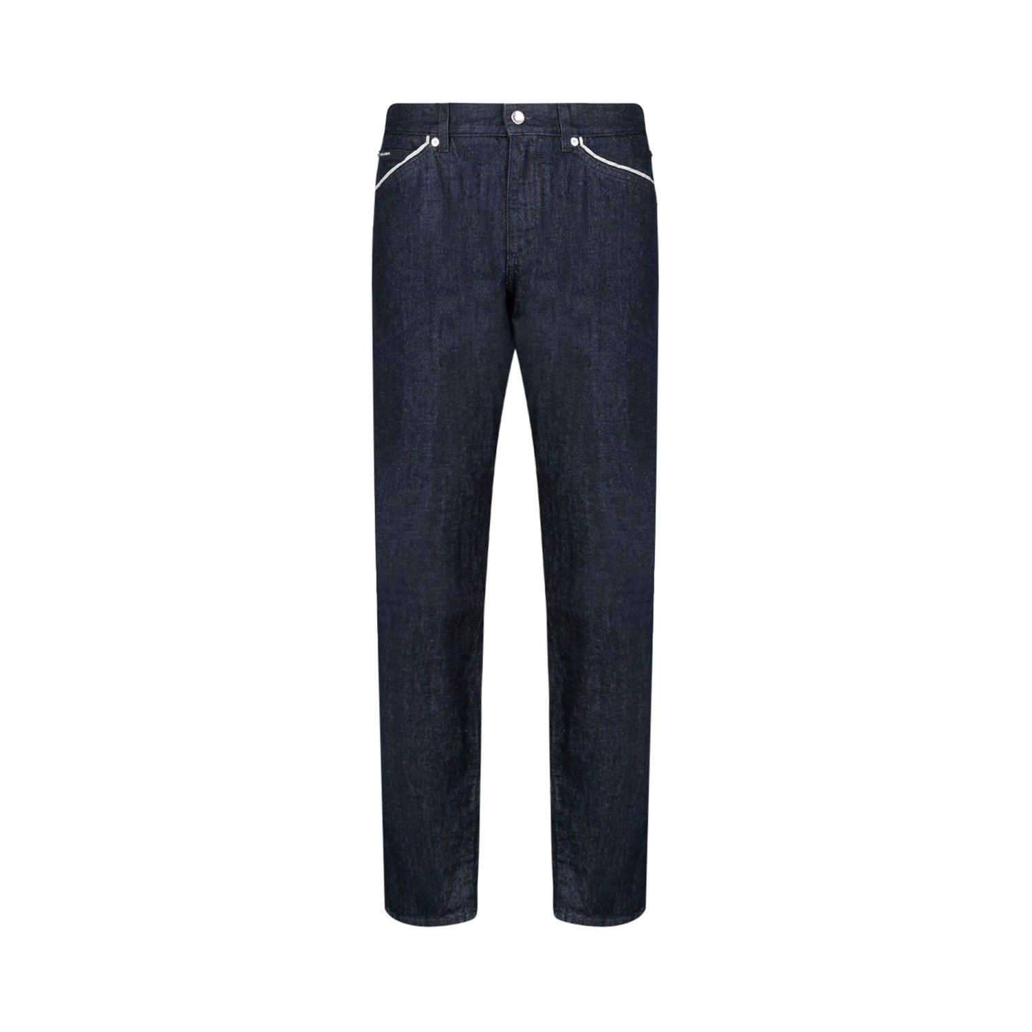 Dolce & Gabbana Blue Selvedge Denim Jeans. Blue selvedge denim jeans with front western-style pockets and patch back pockets with selvedge. Fly-covered zipper and button fastening. Metal Dolce&Gabbana logo tag on the back.