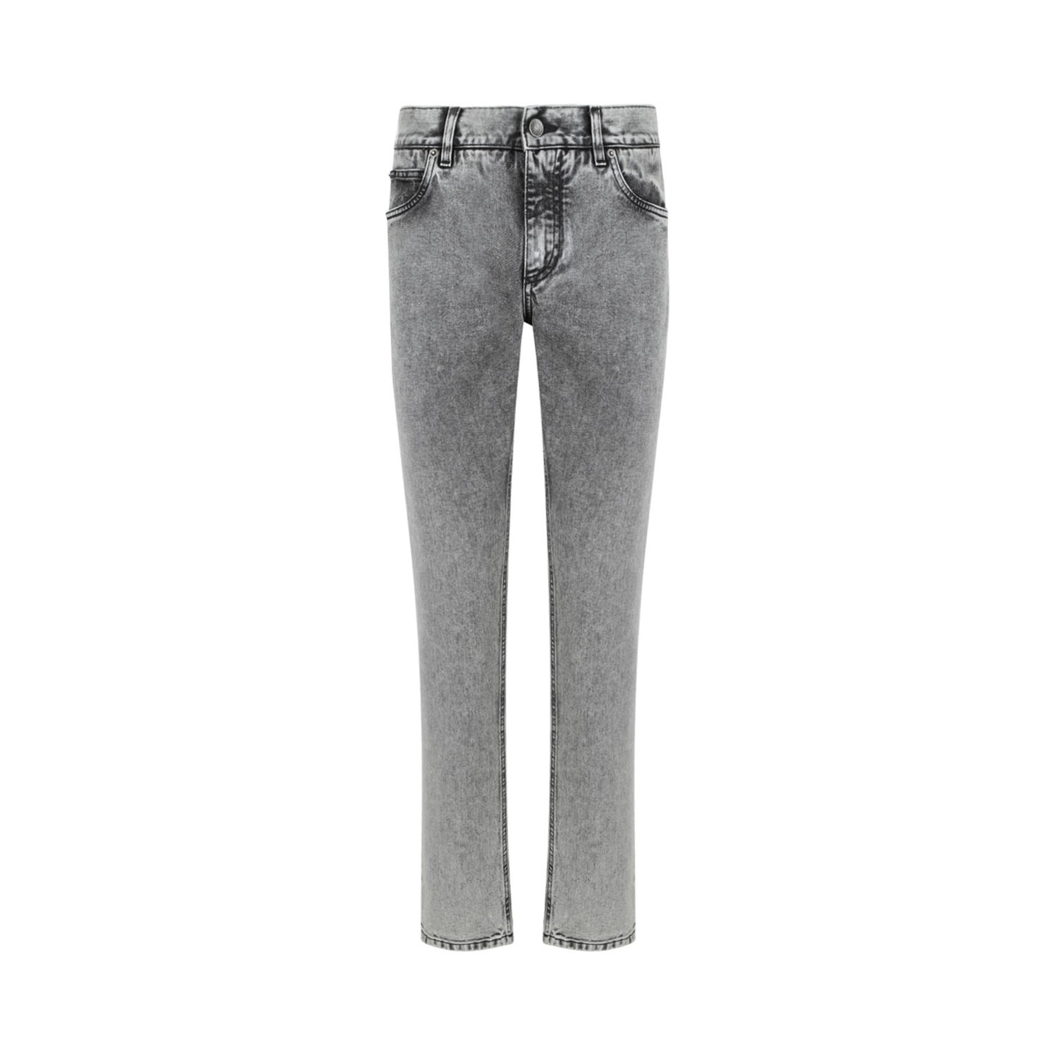 Dolce & Gabbana Grey Acid Wash Jeans. Grey acid wash jeans with five pocket styling, belt loops, front button and zip fastening, logo patch.