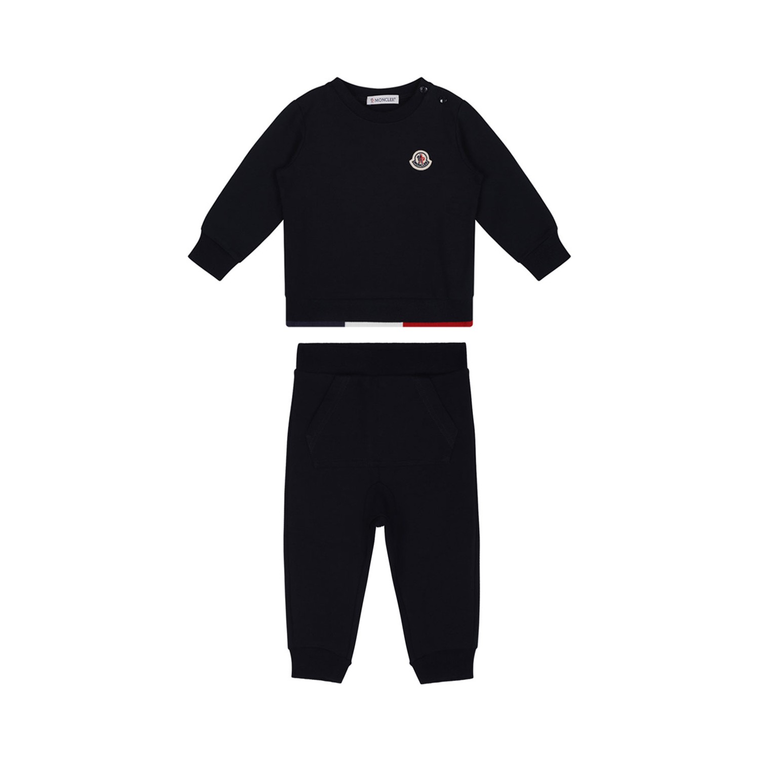 Moncler Kids Navy Blue Sweater and Sweatpants Set with Logo. Navy blue sweater and sweatpants set with logo. An elegant and sporty interpretation for the little ones, made of soft cotton with refined details.