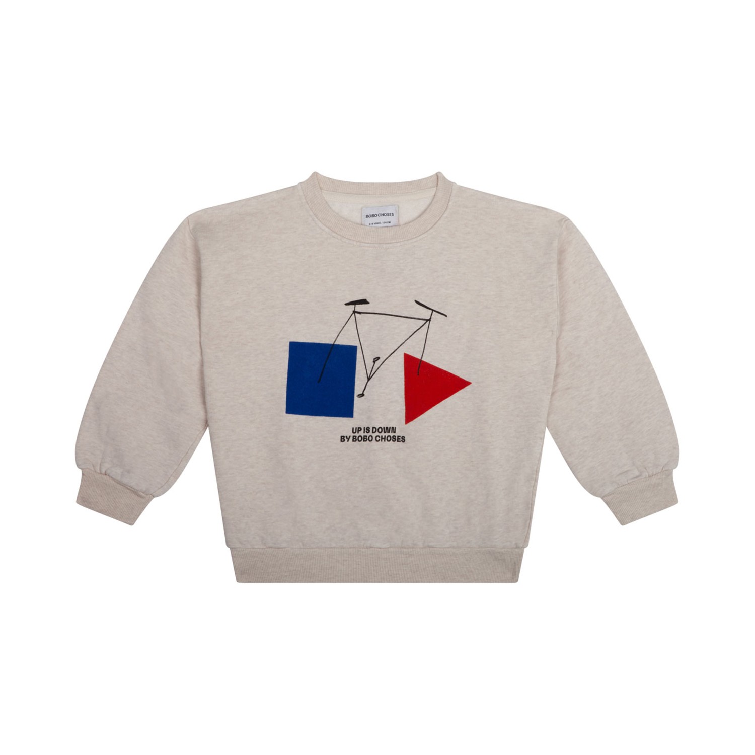 Bobo Choses Crazy Bicy Print Sweatshirt. Light beige and multicolour cotton blend sweatshirt, jersey texture. Graphic print to the front, crew neck, long sleeves, straight hem.