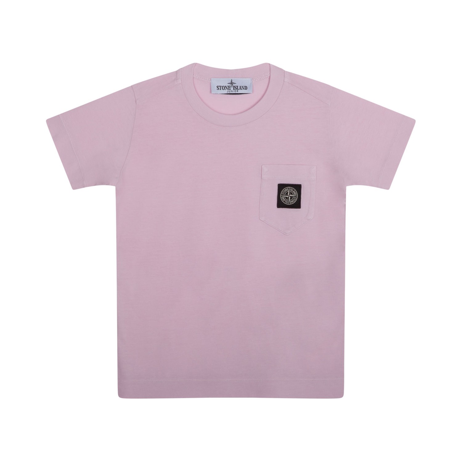 Stone Island Kids Light Pink T-Shirt. Ligh pink t-shirt with crew neck with ribbed trim, short sleeves, patch pocket on chest, logo appliqu
