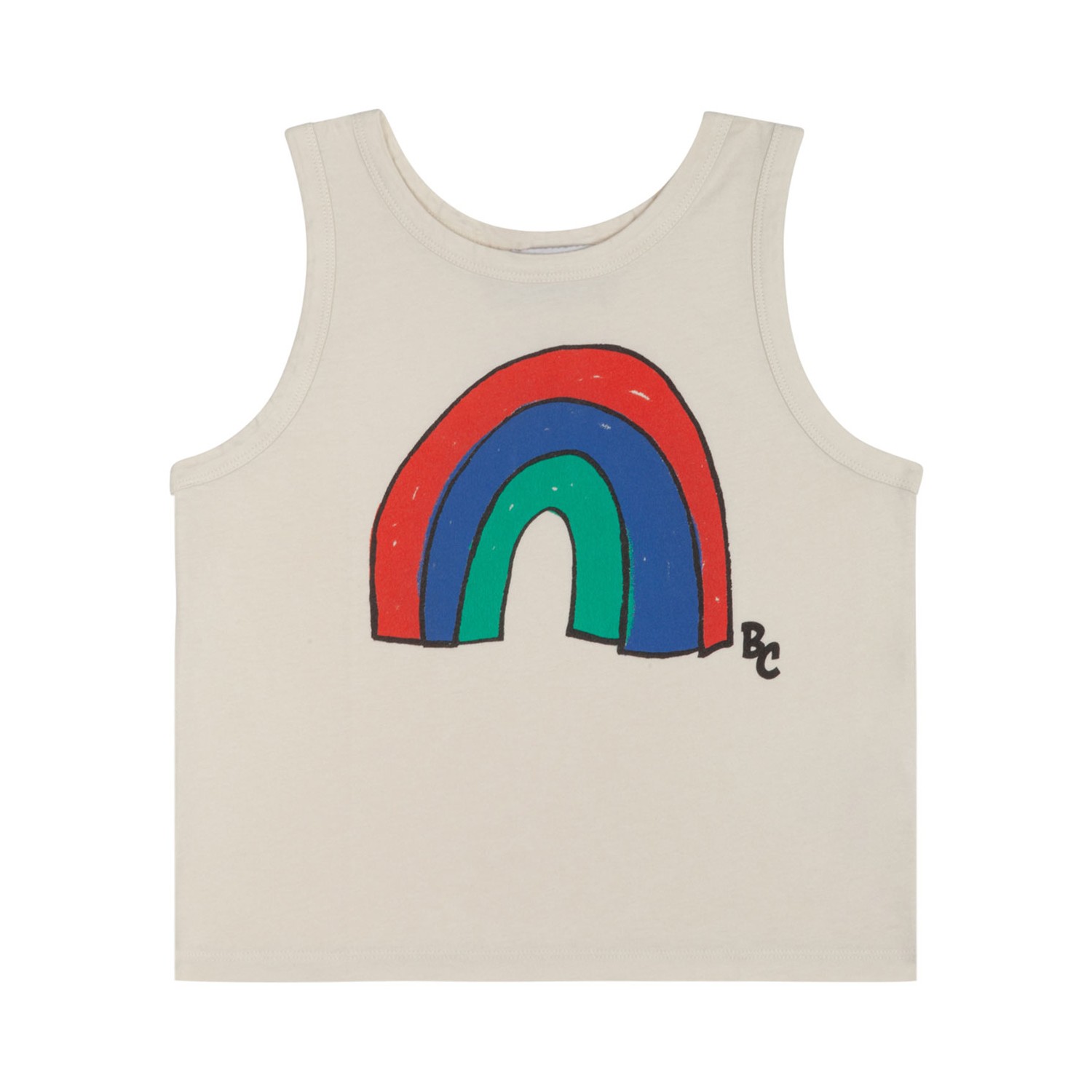 Bobo Choses Rainbow Tank Top. Beige cotton tank top, jersey texture, round neck. Sleeveless, rainbow print, straight hem.