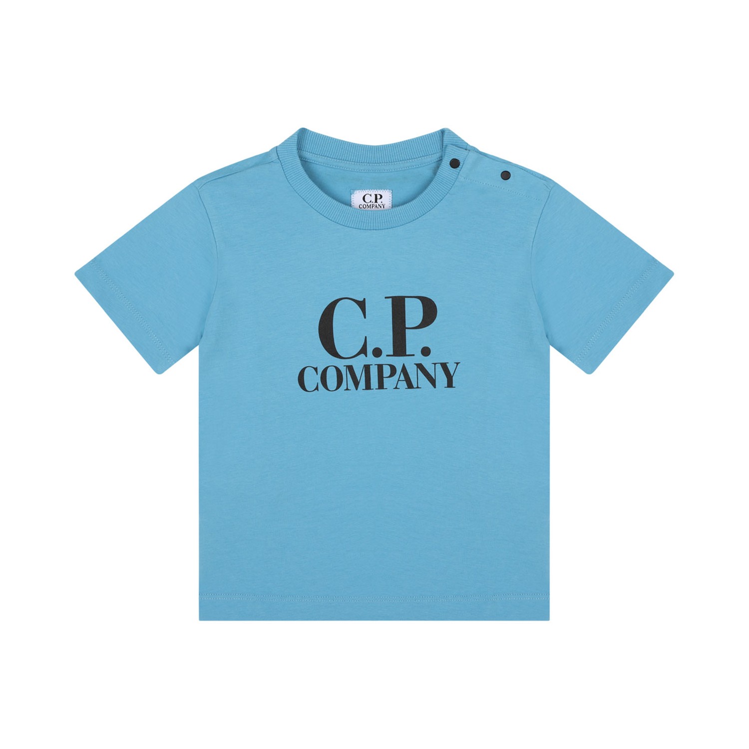 C.P. Company Kids Light Blue T-Shirt. Light Blue cotton t-shirt, crew neck, logo print on chest, short sleeves.