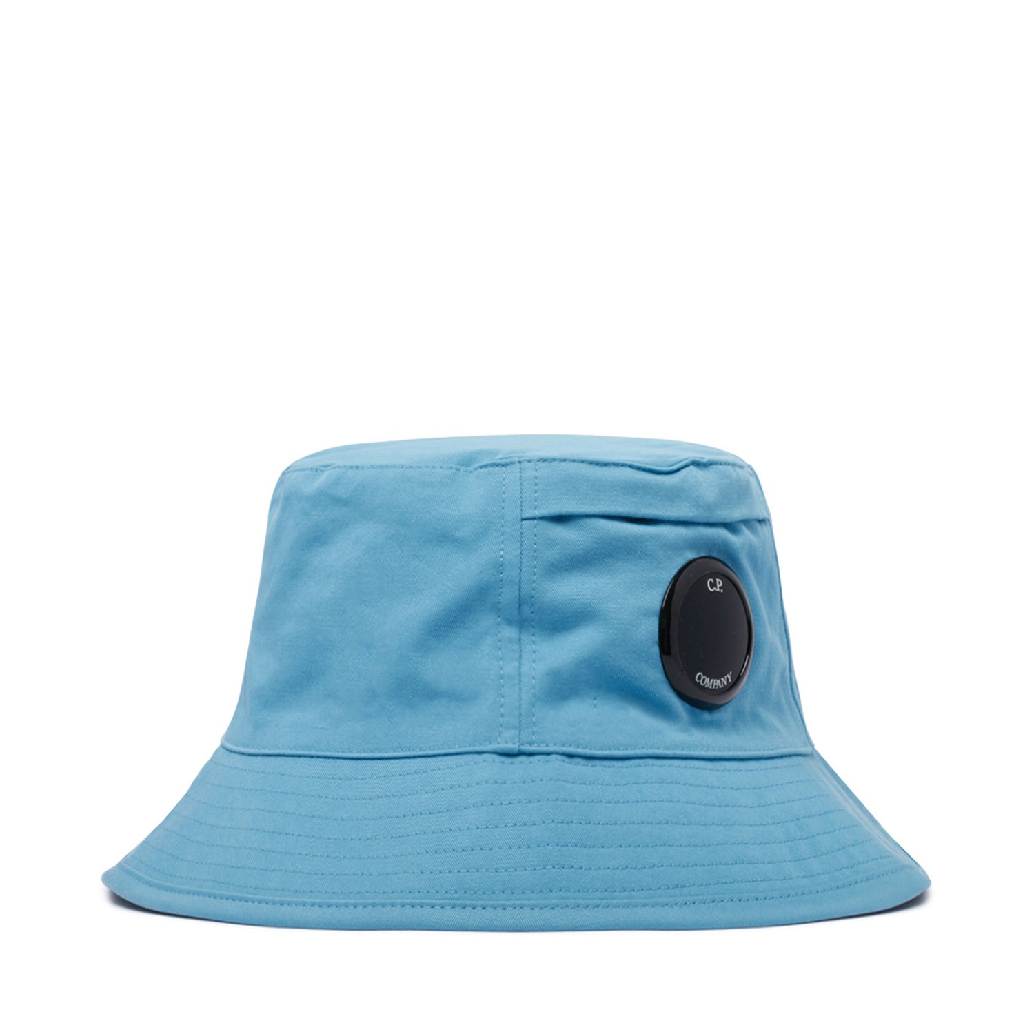 C.P. Company Kids Light Blue Bucket Hat. Light blue cotton bucket hat, front patch logo.