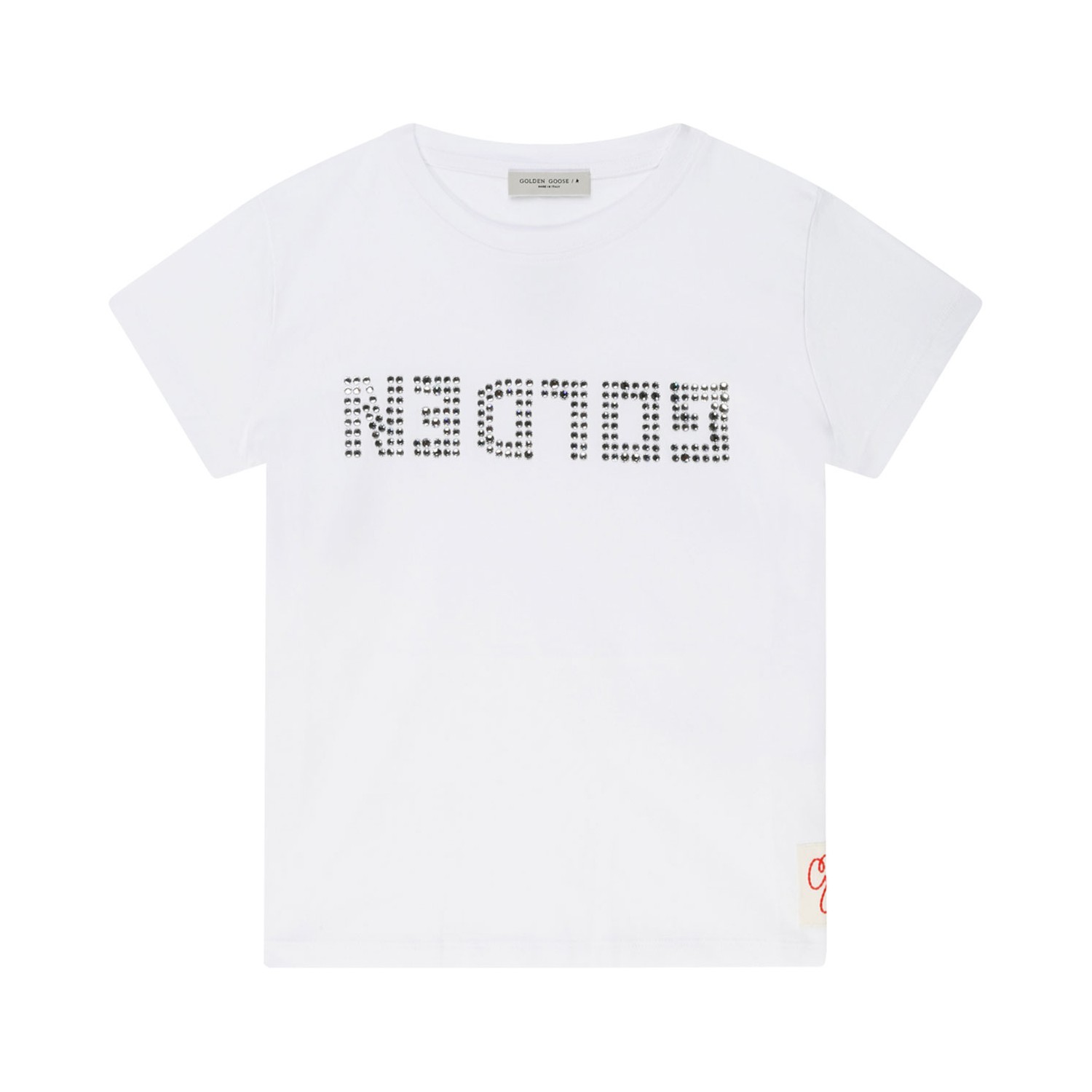 Golden Goose Kids White Short Sleeve T Shirt. White cotton t-shirt, logo lettering detailing to the front, crew neck, short sleeves, straight hem.