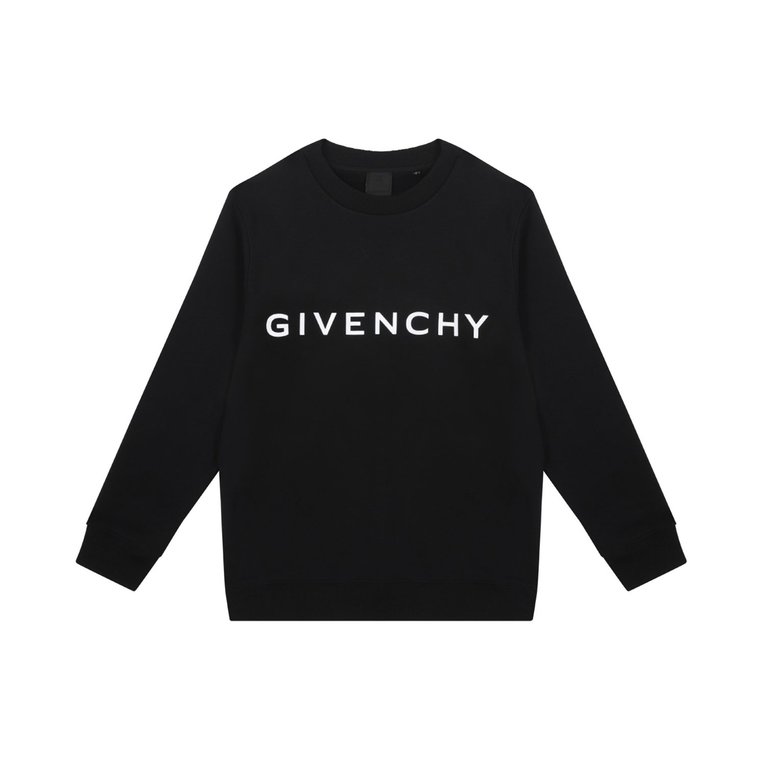 Givenchy Black Lettering Logo Sweatshirt. Black sweatshirt made of cotton blend with crew-neck. Long sleeves with cuffs, contrasting logo print on the front. Straight hem, ribbed trim. Regular fit.