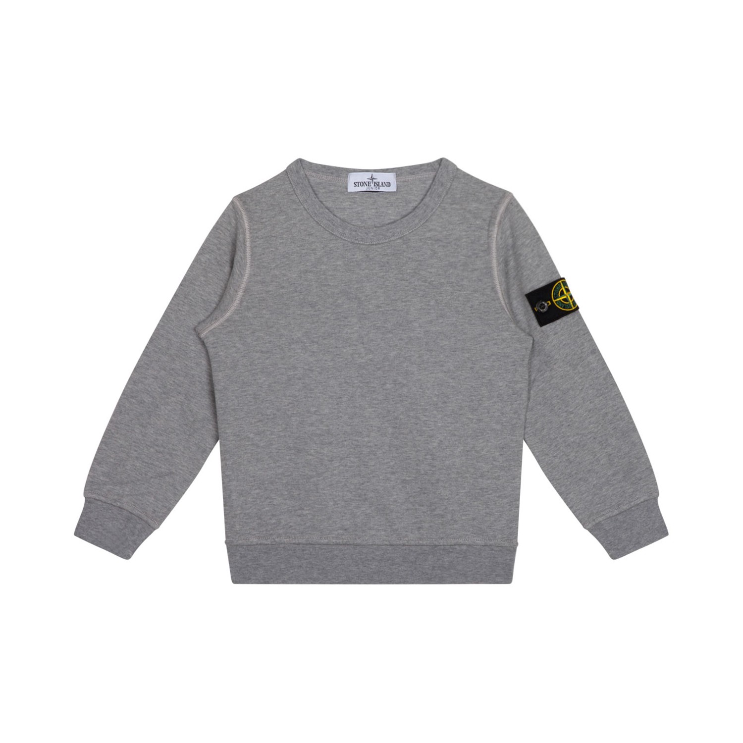 Stone Island Grey Sweatshirt. Grey cotton sweatshirt, logo patch to the side, crew neck, ribbed cuffs and hem.