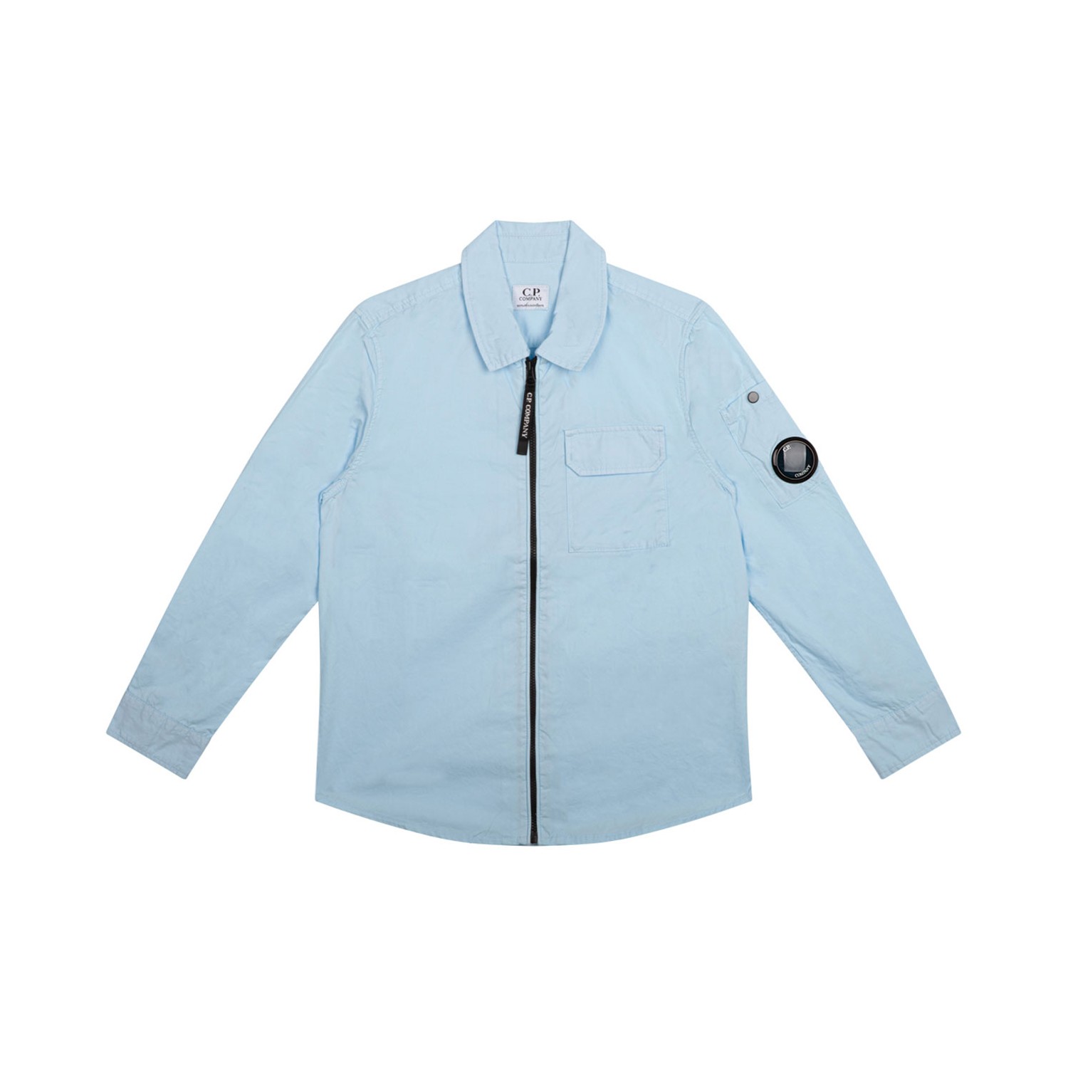 C.P. Company Light Blue Shirt. Light blue cotton shirt, classic neck, front zip fastening, patch pockets, long sleeves and straight hem.
