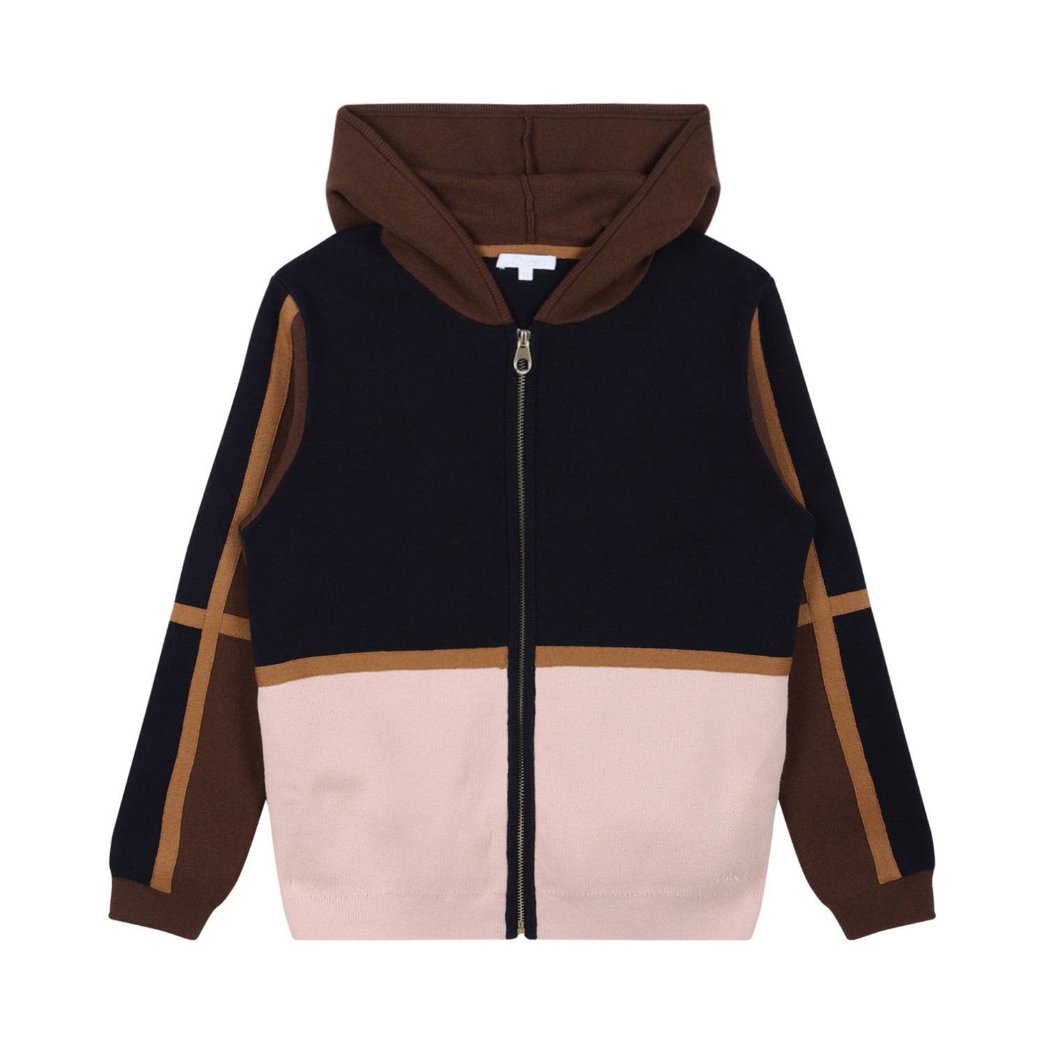 Chloe Kids Colour Block Sweatshirt. Black and multicolour hooded sweatshirt in organic cotton-wool blend. Colour block panelled design, front zip fastening, classic hood, ribbed cuffs and hem. Long sleeves, straight hem.
