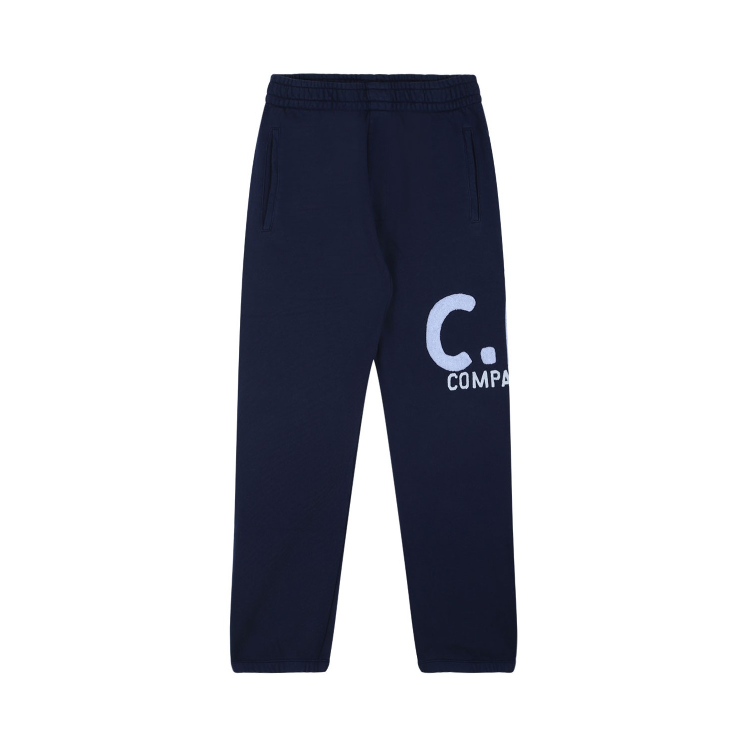 C.P. Company Kids Blue Logo Print Sweatpant. Blue cotton sweatpants, logo print to the side.